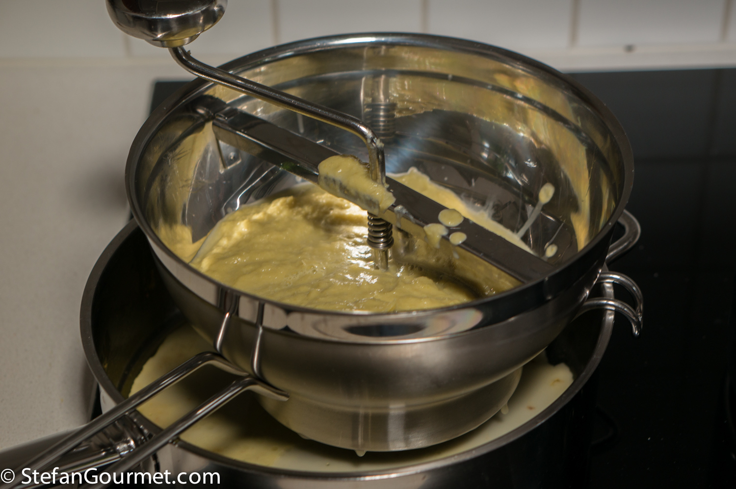 Meanwhile, sieve the asparagus puree using a foodmill.