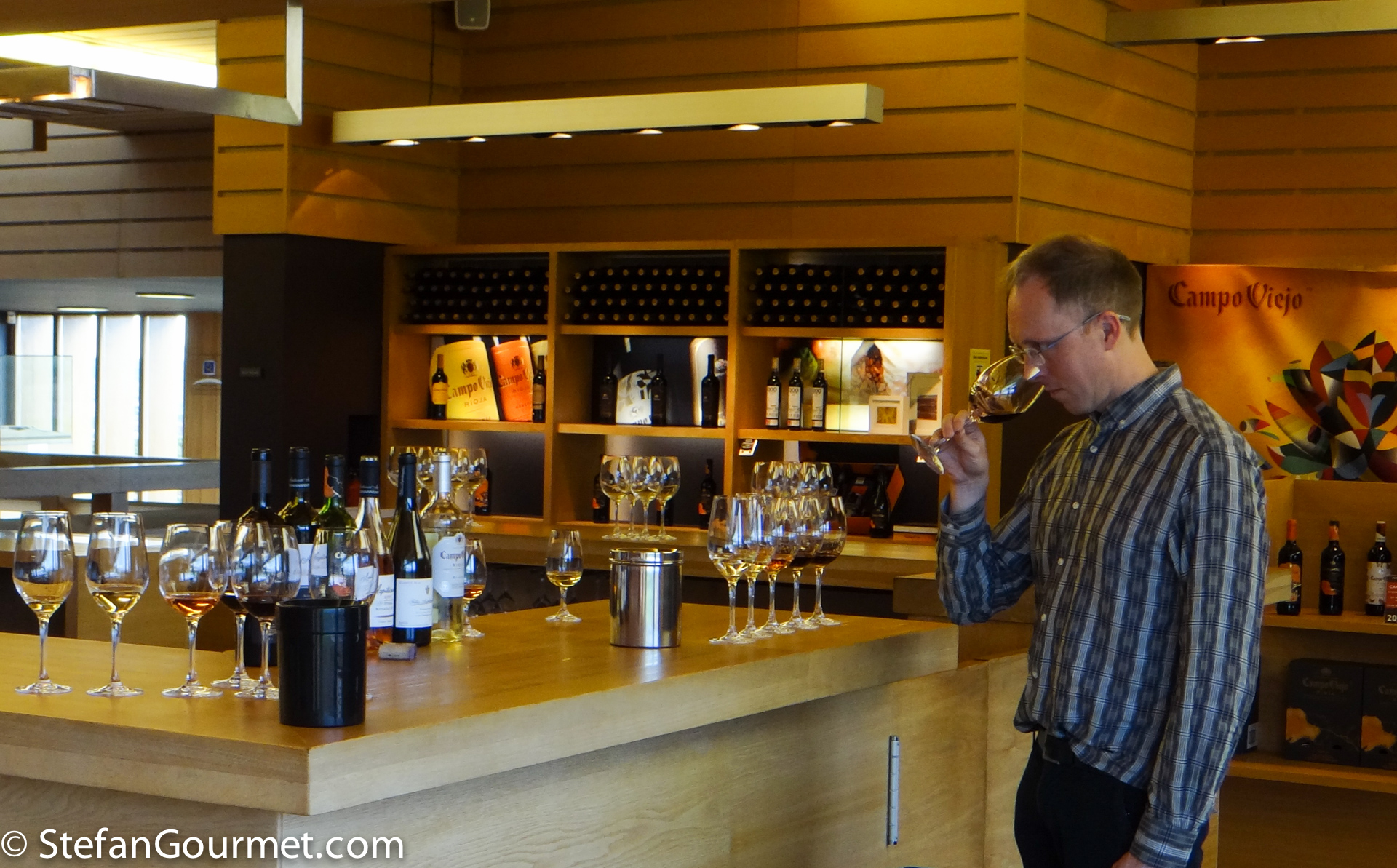 We noted that producers in Rioja are more geared at tourists that come to ‘drink’ rather than ‘taste’ (and buy) than in most other wine production areas we have visited. This means that many producers don’t offer wine tastings at all, or only two or three wines as part of a guided tour for which you have to pay (and where the experience is more about the tour and drinking the wine). We ended up tasting Rioja at three producers: Remelluri (in Rioja Alavesa), Rioja Alta (in Rioja Alta), and Campo Viejo (located in Logroño, but with vineyards all over the Rioja). Campo Viejo offered the best tasting experience by far, because at Remelluri we could only taste two wines without any explanation, and at Rioja Alta the ladies of the wine bar knew only how to pour and operate the cash register, but could not tell us anything about the wines. (At both Remelluri and Rioja Alta paid guided tours are available, which we did not try as we are more interested in tasting than seeing yet another cellar.)
