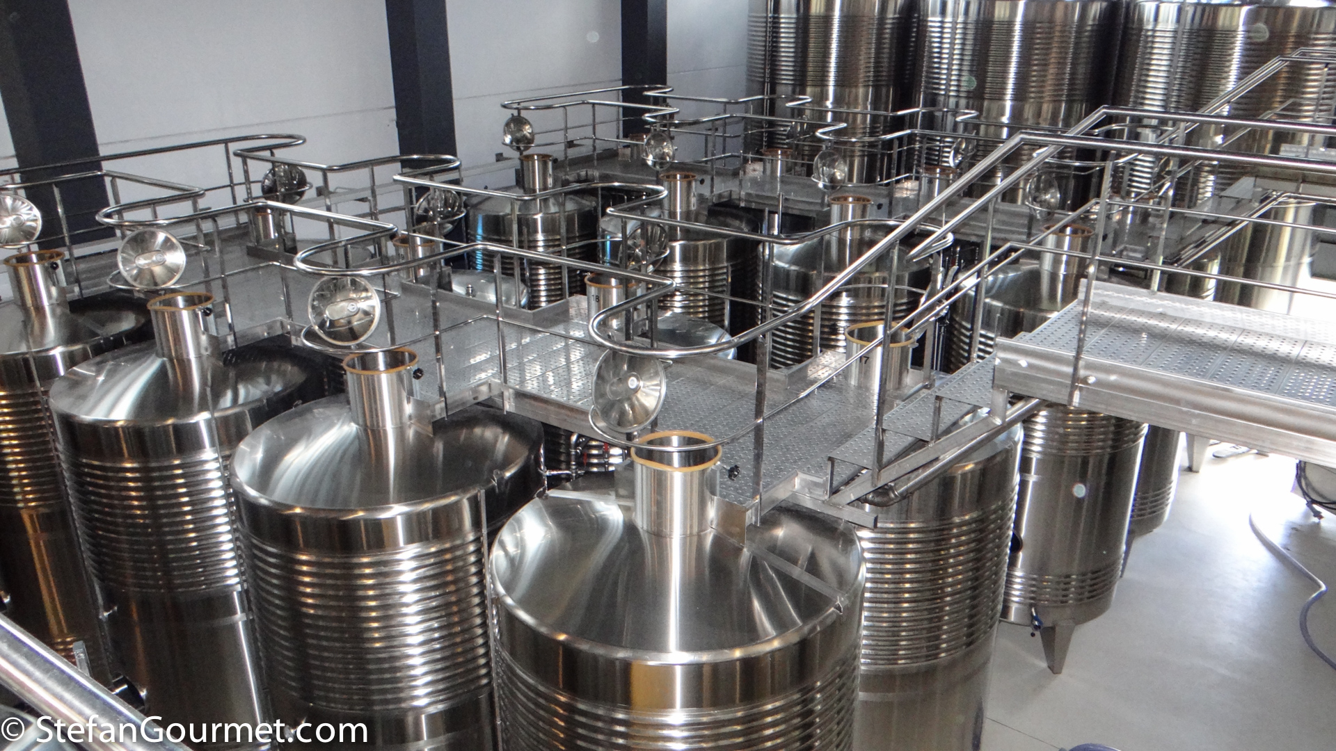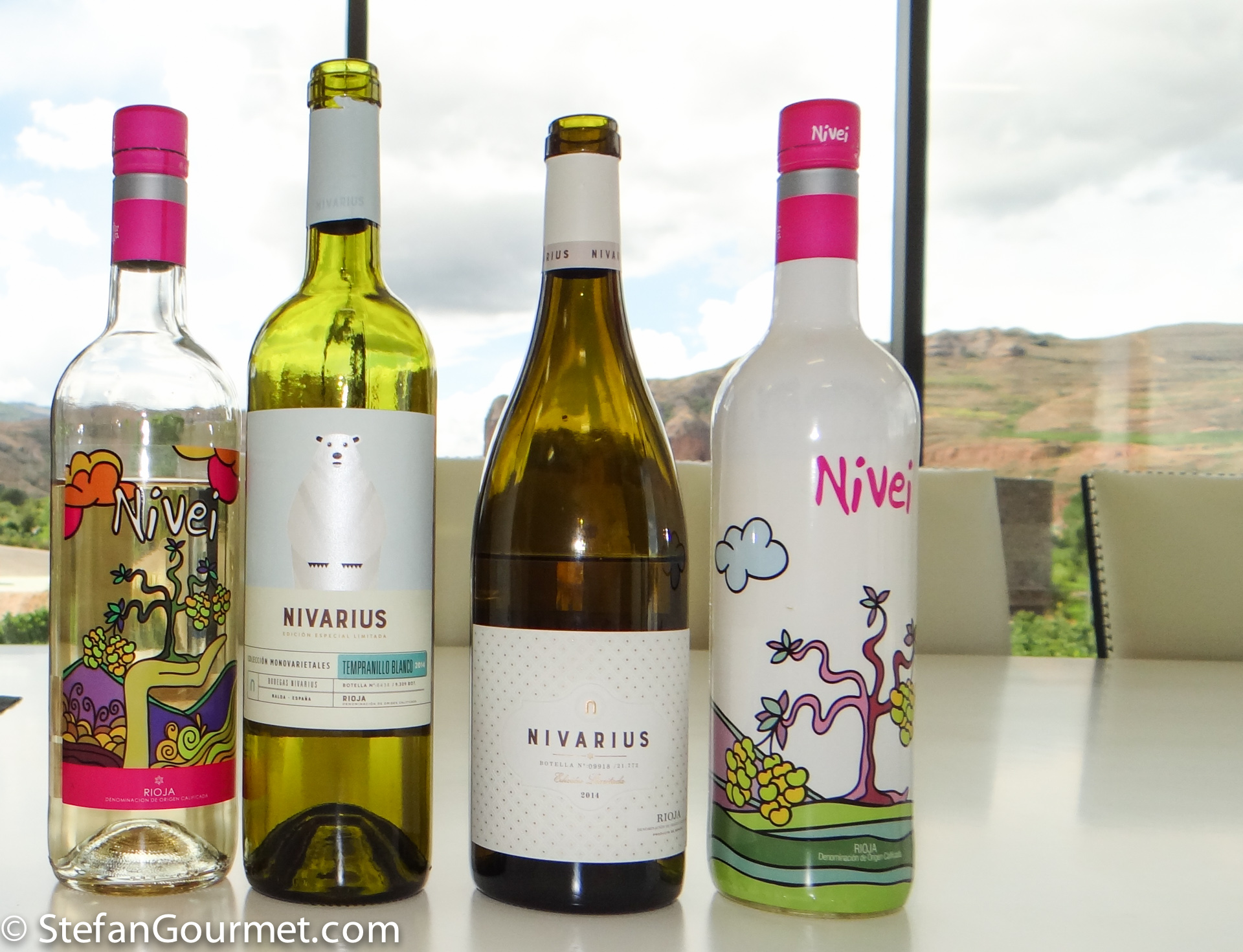 The first winery we visited in Rioja is a very new one: Nivarius. The first vintage produced was only in 2012. It is unique in Rioja because it is the first and only winery in Rioja that only produces white wine. This is possible because of the unique terroir after which the winery was named, because “nivarius” is Latin for “ice box”. The vineyards are located on north-facing slopes at 800 meters (2600 ft) above sea-level. This place is so cold that for centuries it has been used to store snow to be used in the summer. Because of that, the white grapes retain their acidity and take long enough to ripen to let the aromas develop fully. The harvest starts in the second half of September and lasts well into October, which is very late for whites in Spain. The winery and vineyards are located near the town of Naldus in the Rioja Baja subzone (although in this case, “baja” (=low) does not apply!) with sandy soils of sedimentary origin, not very fertile and with good drainage.