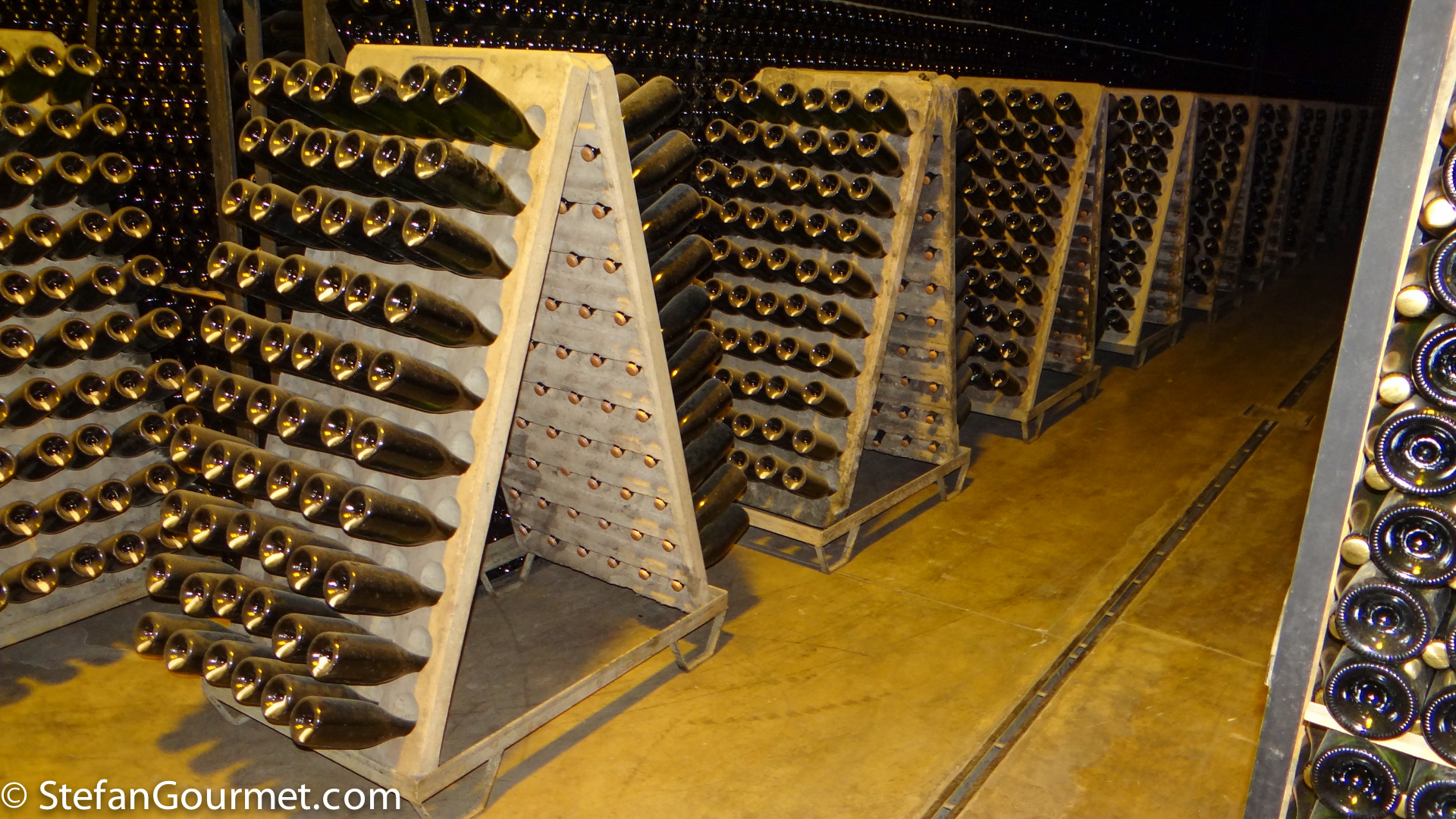 The aging on the lees of cava is done in the bottle. The high stacks of bottles were very impressive. Just imagine the weight that the bottles on the bottom are carrying!
