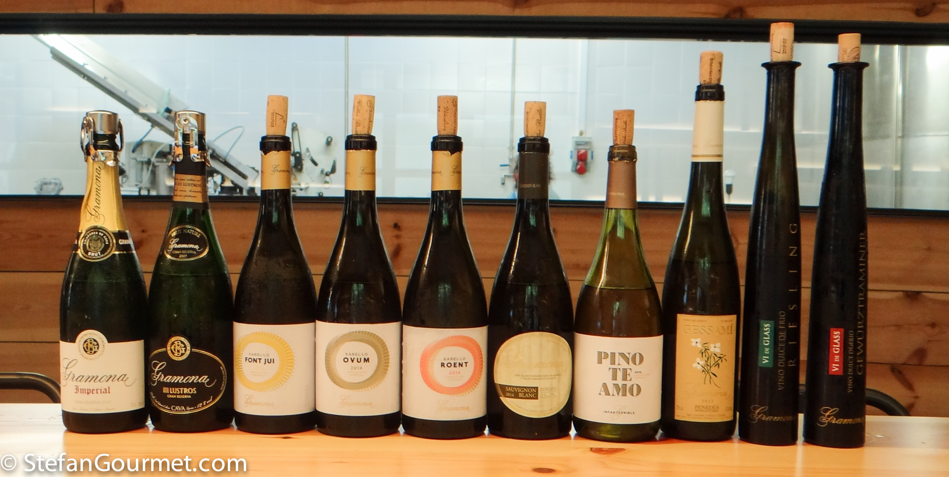 The last winery we visit in Spain is Gramona in Sant’ Sadurni d’Anoia, the capital of cava in which 93% of all cava is produced. DO Cava is allowed to be produced in many regions all over Spain, but most of the cava comes from Penedès. Gramona is a family business that has made cava for five generations since 1881 in a winery that used to be on the edge of the town but is now surrounded. The artisan cava is still made here. The current generation has built a new winery near the vineyards in 2001, and now Gramona also produces still wines as DO Penedès. Gramona has 50 hectares (120 acres) of own vineyards that are all organic and they are working towards bio-dynamic.