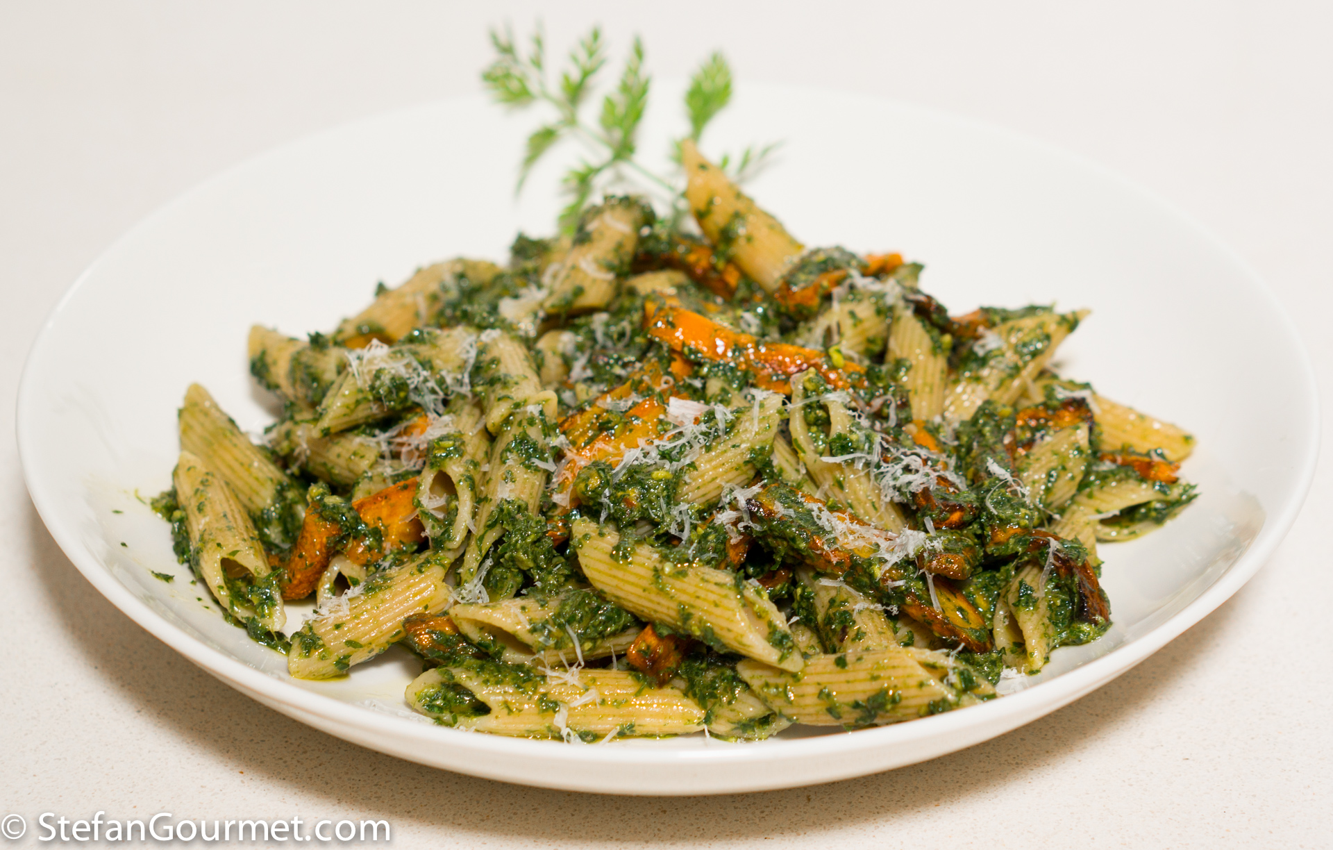 What a great use for something for which most of us give little thought. Carrot top pesto. Fantastic! Love the idea of a pasta with roasted carrots. It’s not normally done here and would be a welcome change.