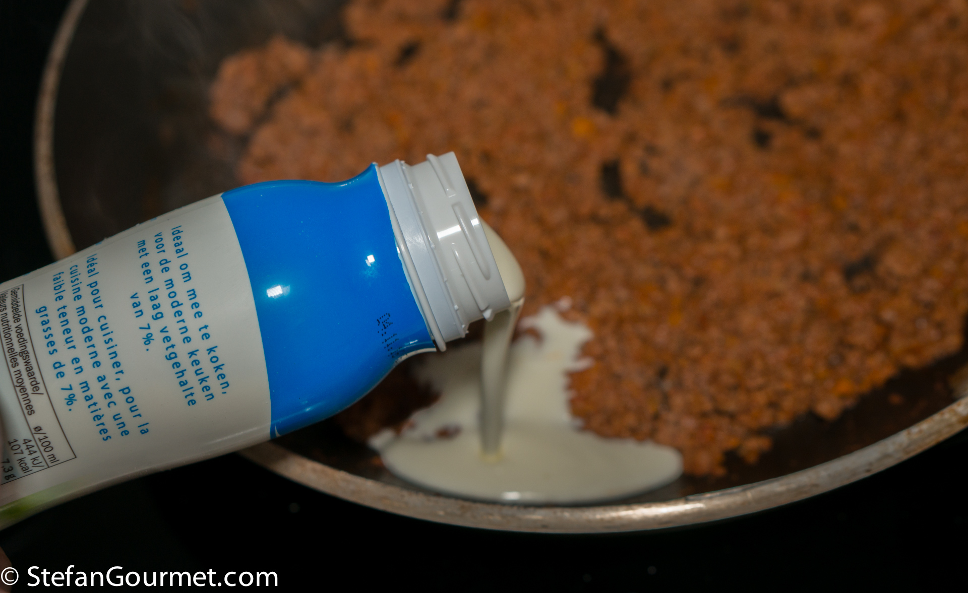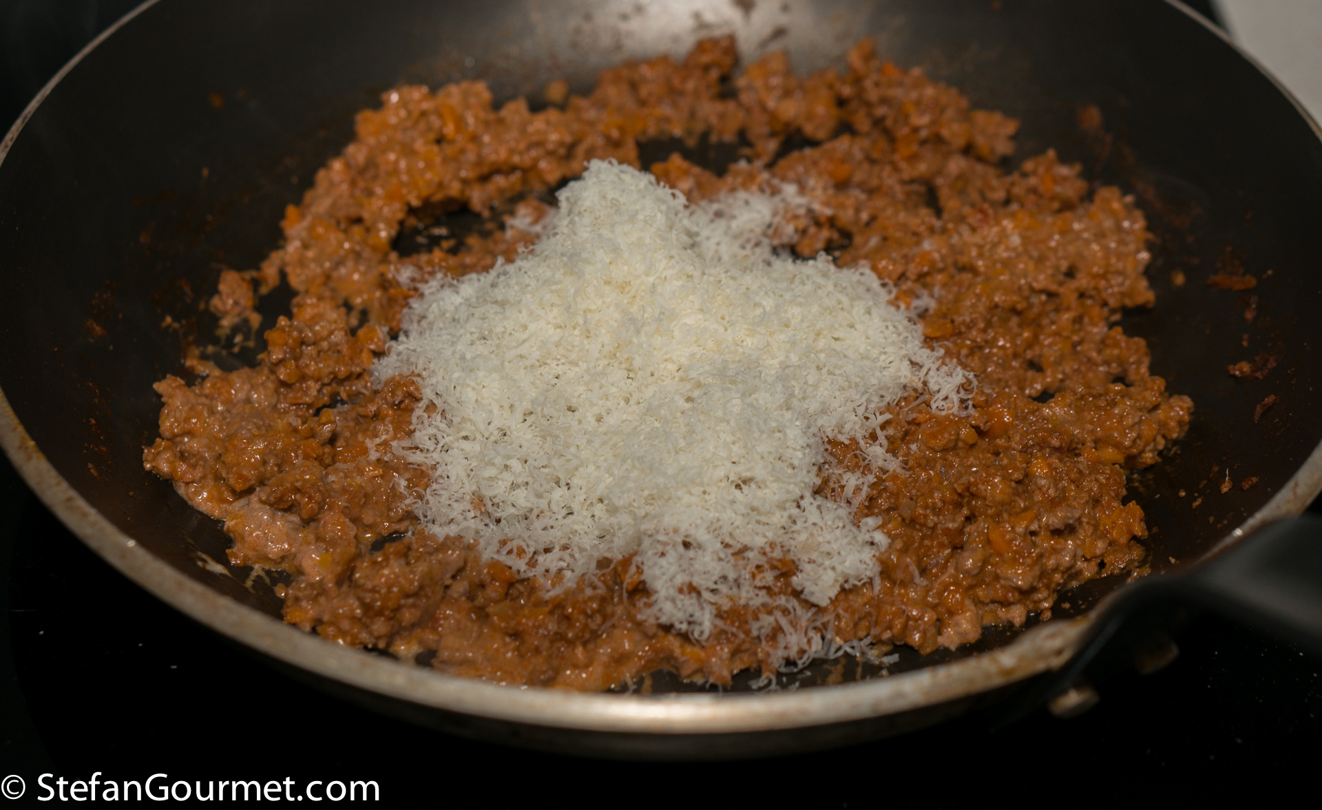 Before serving, gently heat up some ragù in a non-stick pan. Add some cream if you like…