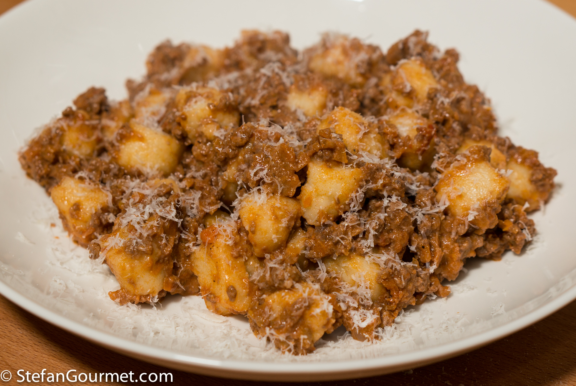 If you think making potato gnocchi from scratch takes too much time, ‘water gnocchi‘ are a great alternative. These are made by adding flour to boiling water, similar to making dough for eclairs or puffs. In Italy this is called gnocchi all’acqua (water gnocchi) or gnocchi di farina (flour gnocchi). These gnocchi have the same texture (but not the potato flavor) of good homemade potato gnocchi, but are a lot easier and quicker to make.