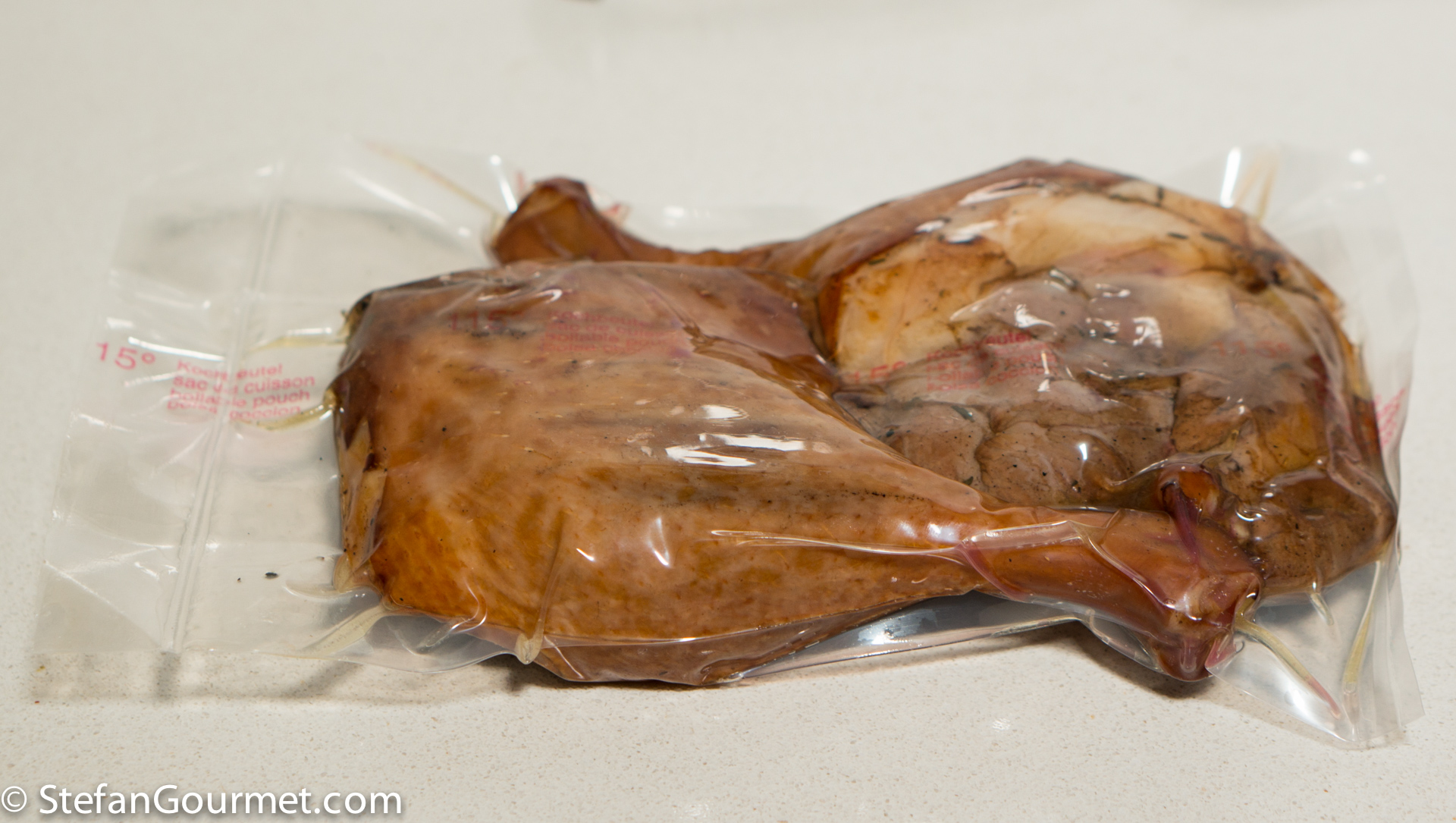Legs tasted great! Just added a little bit olive oil in the bag. After sous vide cooking there was enough fat to cook the legs in and when they were hot I just put them under the grill. Delicious, especially together with your fennel fondant (https://stefangourmet.com/2013/05/17/fennel-sous-vide-fondant/).