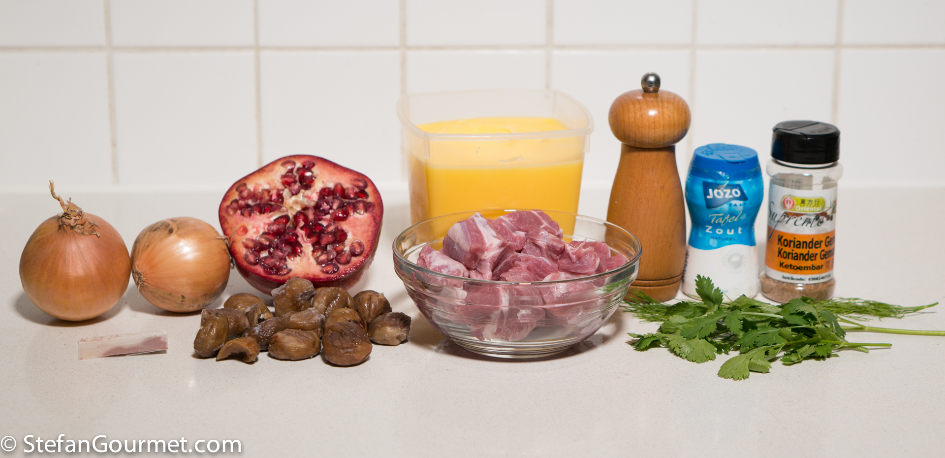Have you ever eaten a dish from Azerbaijan? I had not. Thanks to Darya’s post, I have prepared this wonderful lamb stew with chestnuts and pomegranate. It is original and absolutely delicious. Of course I cooked the meat sous-vide, but if you don’t have the equipment you can cook it on the stovetop instead. With the red pomegranate seeds and green herbs this dish has the perfect look for Christmas as well. I am usually not a big fan of cilantro, but on this dish it works outstandingly well and I kept adding more cilantro while I was eating! Thank you Darya, I will definitely make this more often.