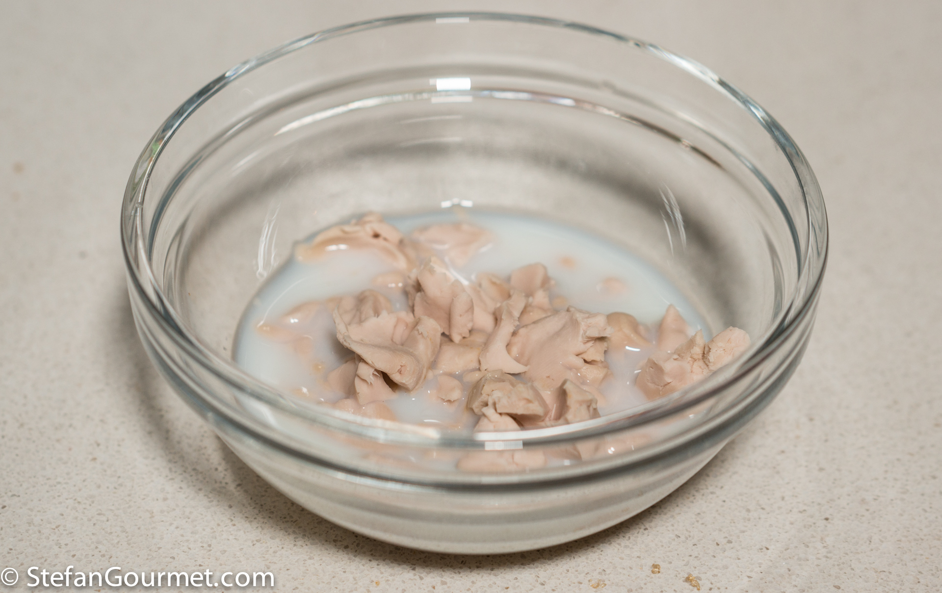 Crumble 25 grams of fresh yeast into a tablespoon of lukewarm milk…