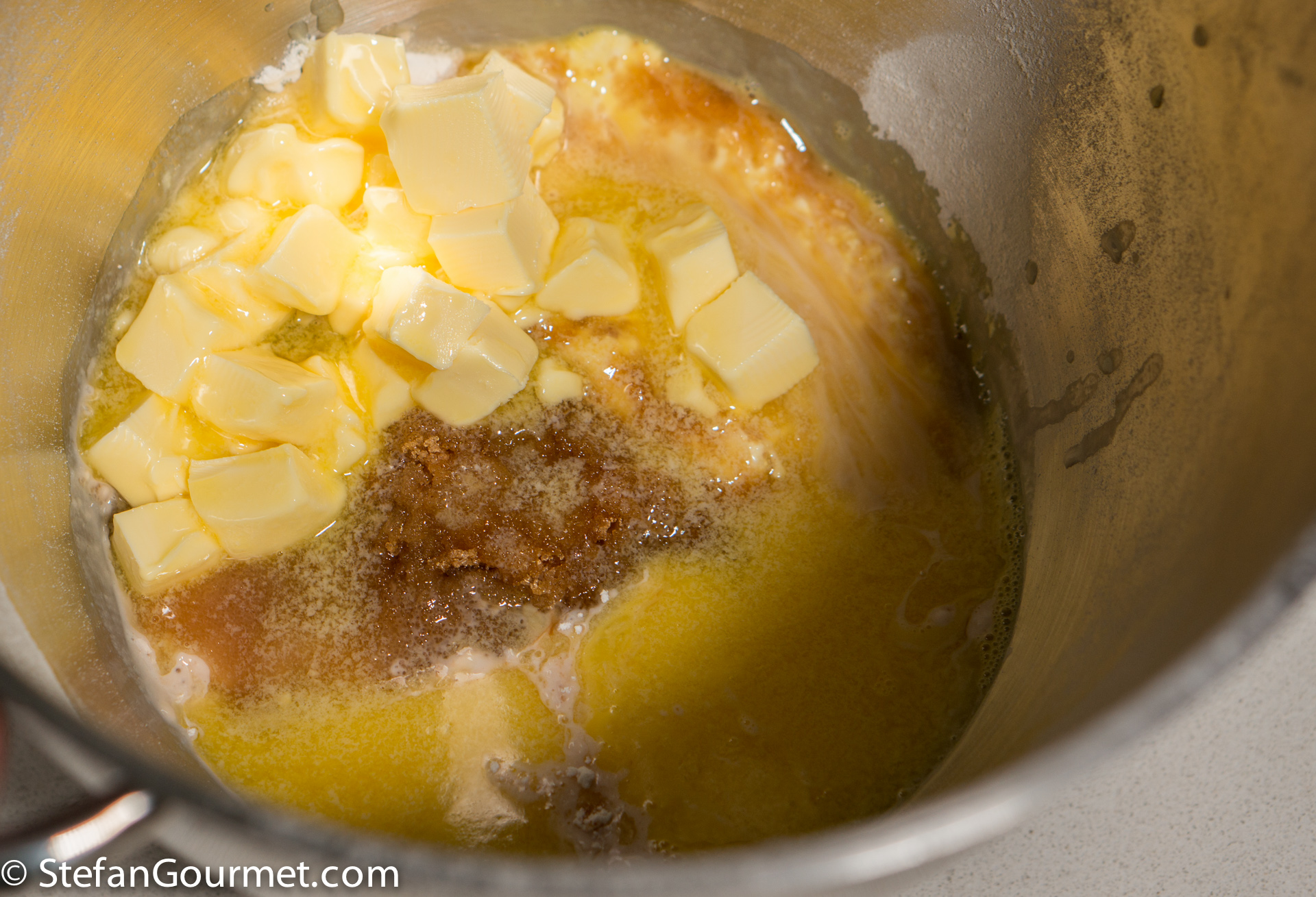 200 grams (2/3 cup) sugar syrup (called pancake syrup in the Netherlands, corn syrup could be substituted)