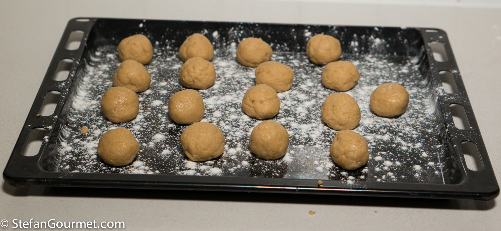 Divide the dough into balls of about 30 grams (1 oz) and arrange them on a warm baking sheet, spaced apart.