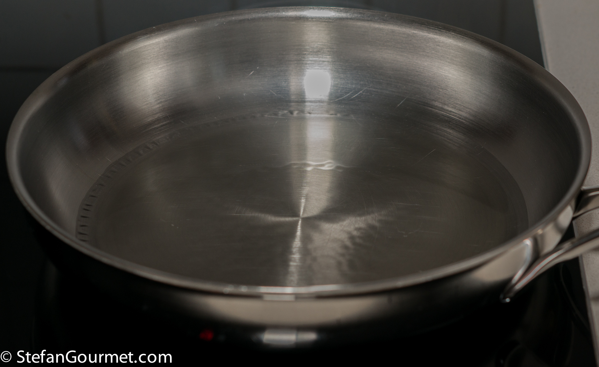 Heat a generous amount of oil in a frying pan until it is smokingly hot. Notice the oil rippling in the pan!