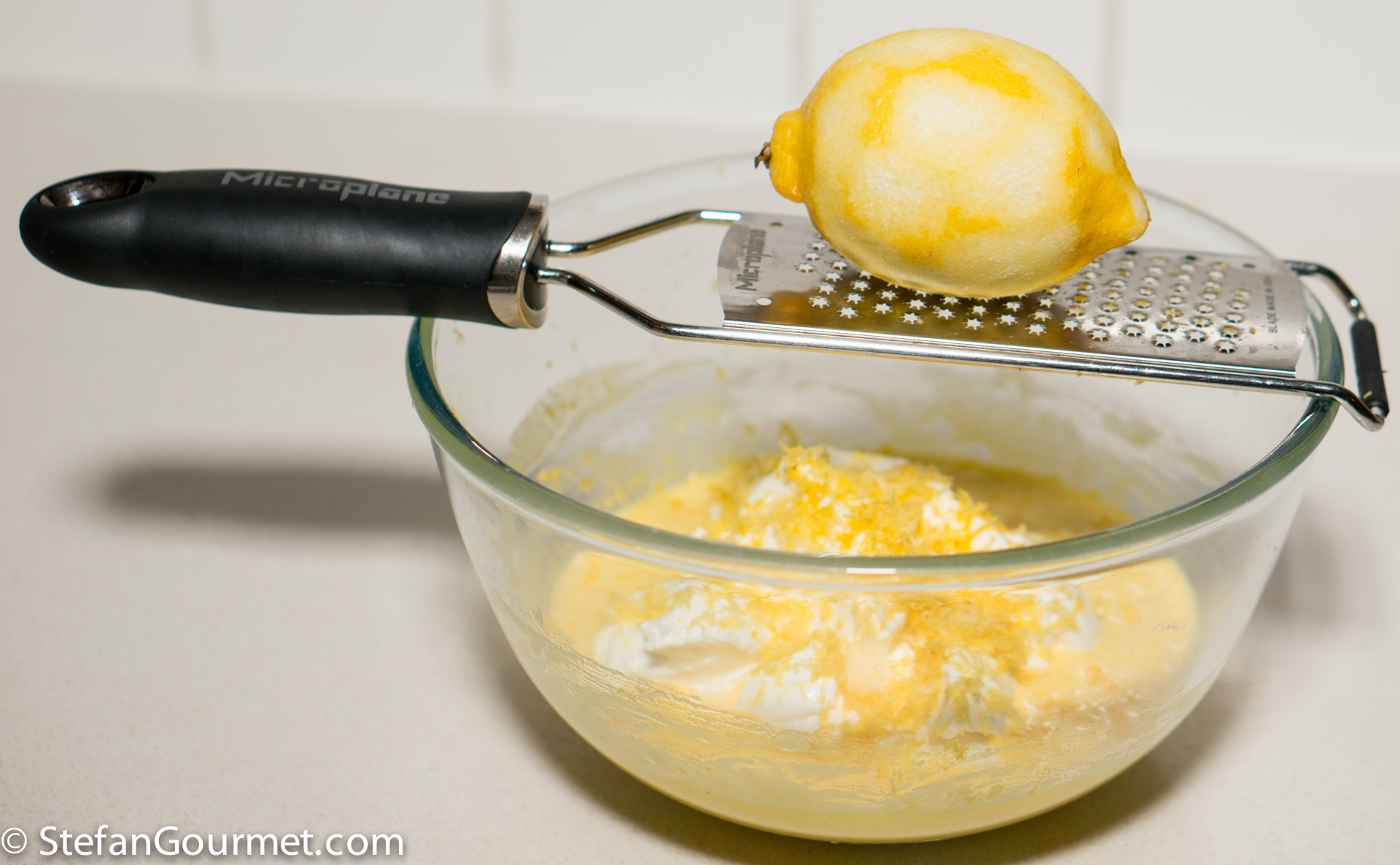 Add 350 grams of yogurt and the grated zest of a lemon.