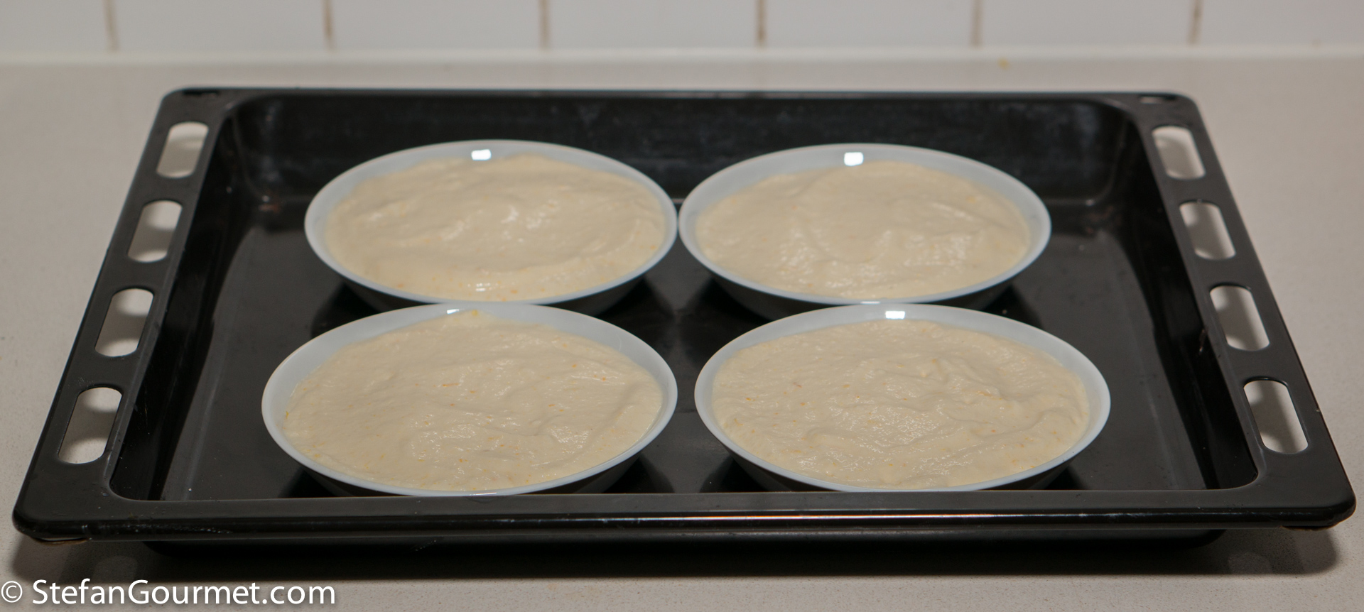 If using ramekins, pour the batter into the ramekins. As you will be serving it in the ramekins, there is no need to butter them.
