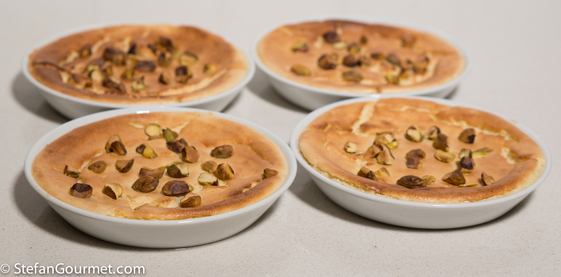 Return to the oven and bake until set and the top is golden, about 10 minutes for ramekins or 20 minutes for a whole cake.