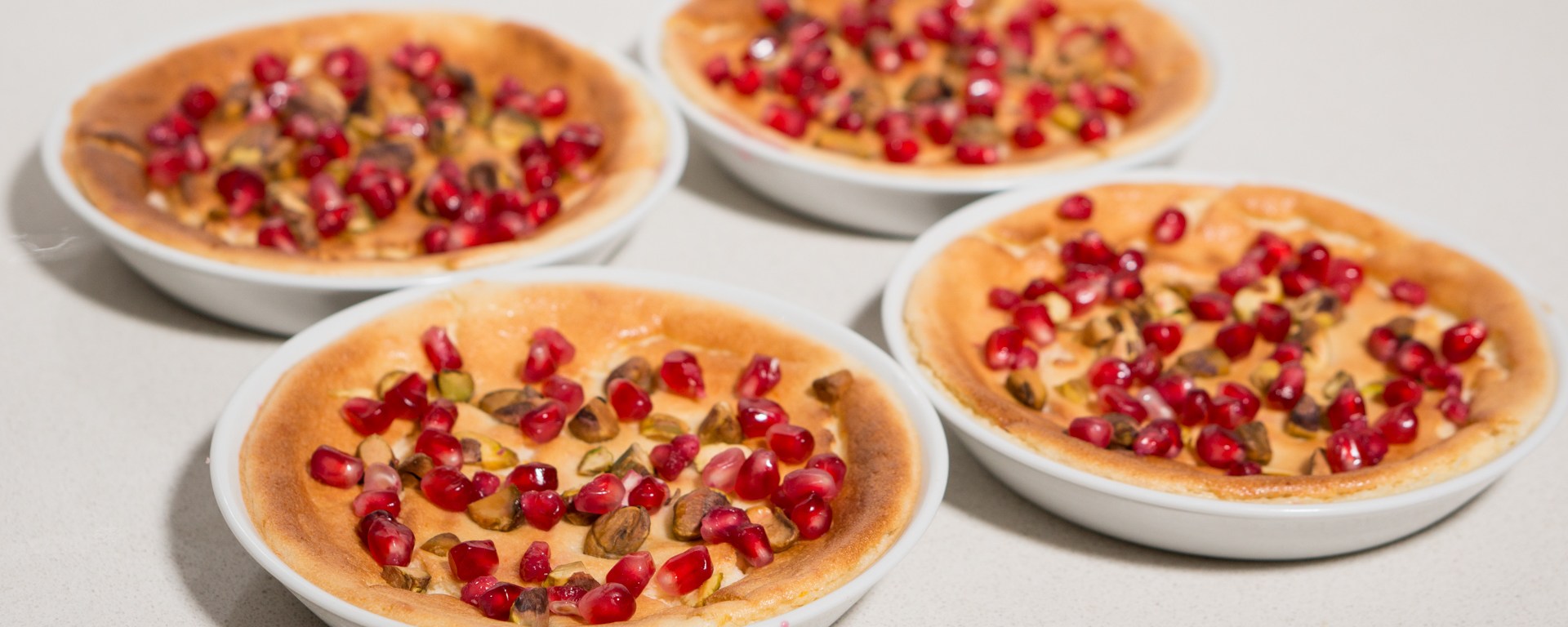 When I saw this yogurt cake on Mimi’s blog, I wanted to make it straight away. She had eaten it at Moro, a restaurant in London, and loved it so much that she made it at home. I can see why, because it is both original and delicious. The nice thing about this yogurt cake is that it is very light and fresh, and with the pistachios and pomegranate seeds it looks very festive as well. There is hardly any flour in it, so it is a lot like a soufflé. Unlike many other desserts, it is not heavy at all, so even after a big meal you can still enjoy this. I liked it so much that I’ve already made it twice.