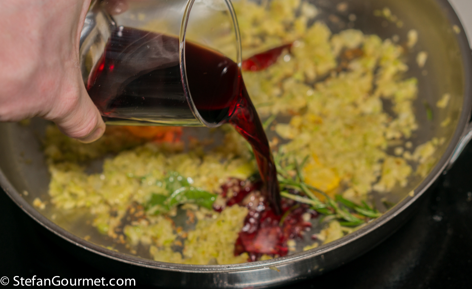 Deglaze with 80 ml of wine.