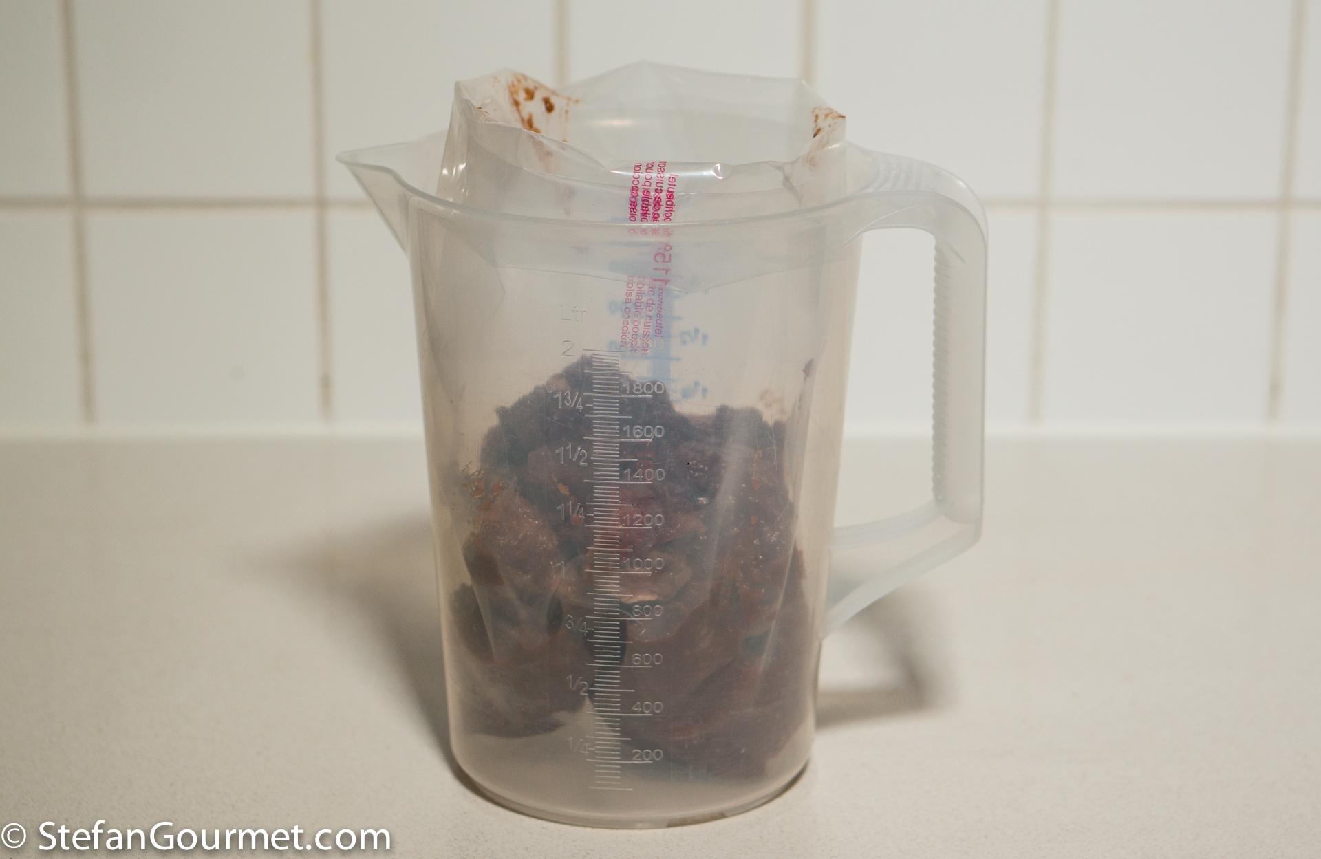 To transfer the meat and sauce into a bag, there are two tricks I use to do this cleanly: