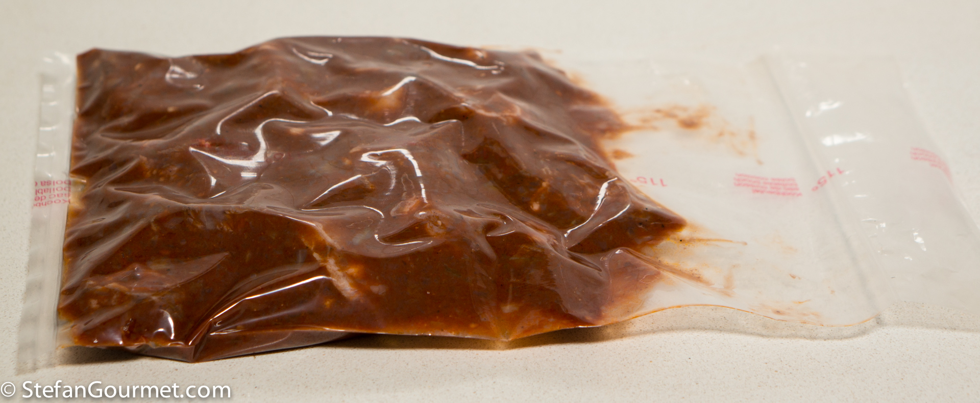 If using a ziplock bag, transfer the meat and sauce to the bag, and close it with as little air as possible using the water displacement method.
