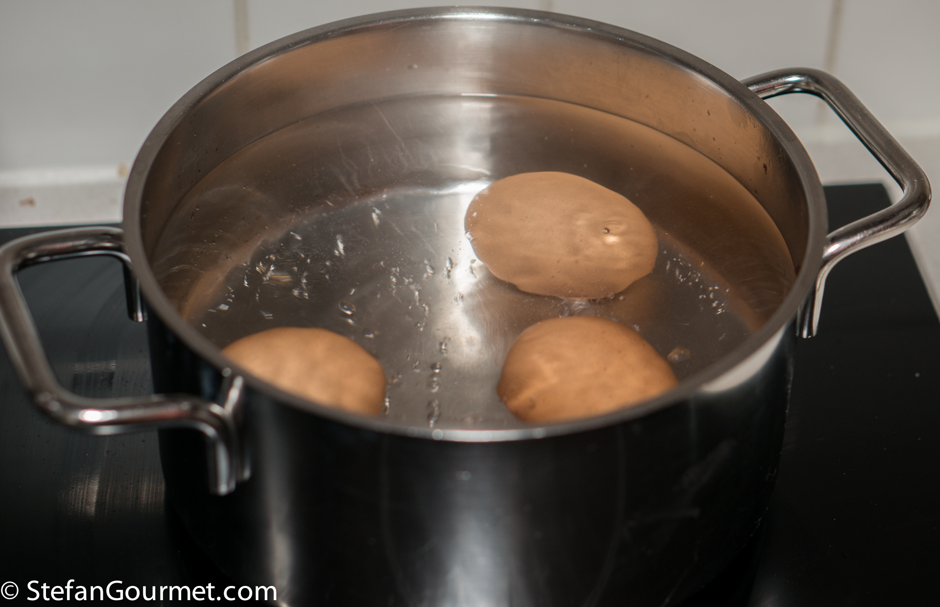 Eggs was the first thing I tried sous-vide six years ago. I have tried many eggs at many temperatures, but never ever a single egg came out cleanly from its shell after cooking sous-vide. I didn’t try sous-vide for this recipe because the yolk needs to be softer than the white. The white needs to be quite firm to allow to peel it without the white breaking. Hard boiled eggs would be a lot easier, but not as special.