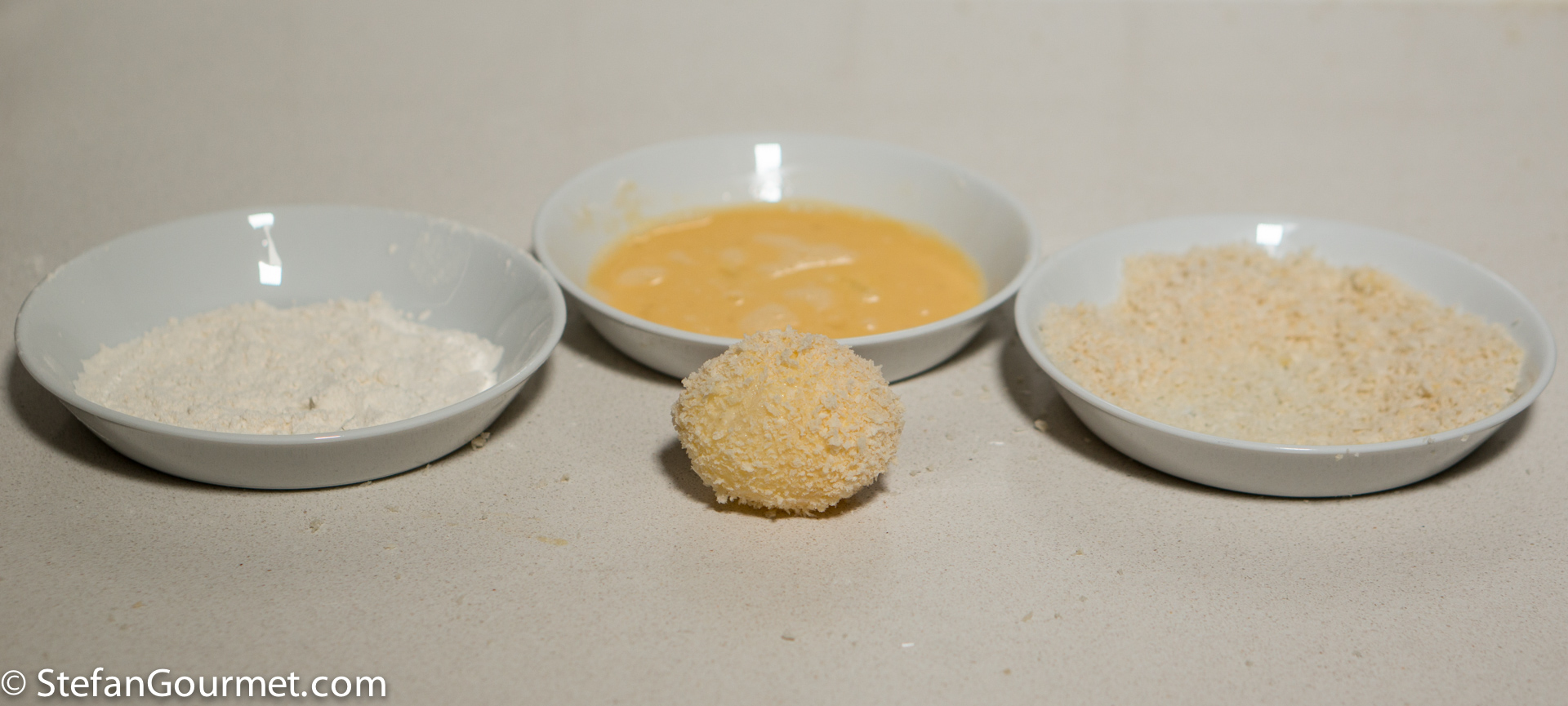 I breaded the egg by first dusting it with flour, then dipping in beaten egg, and finally in panko.