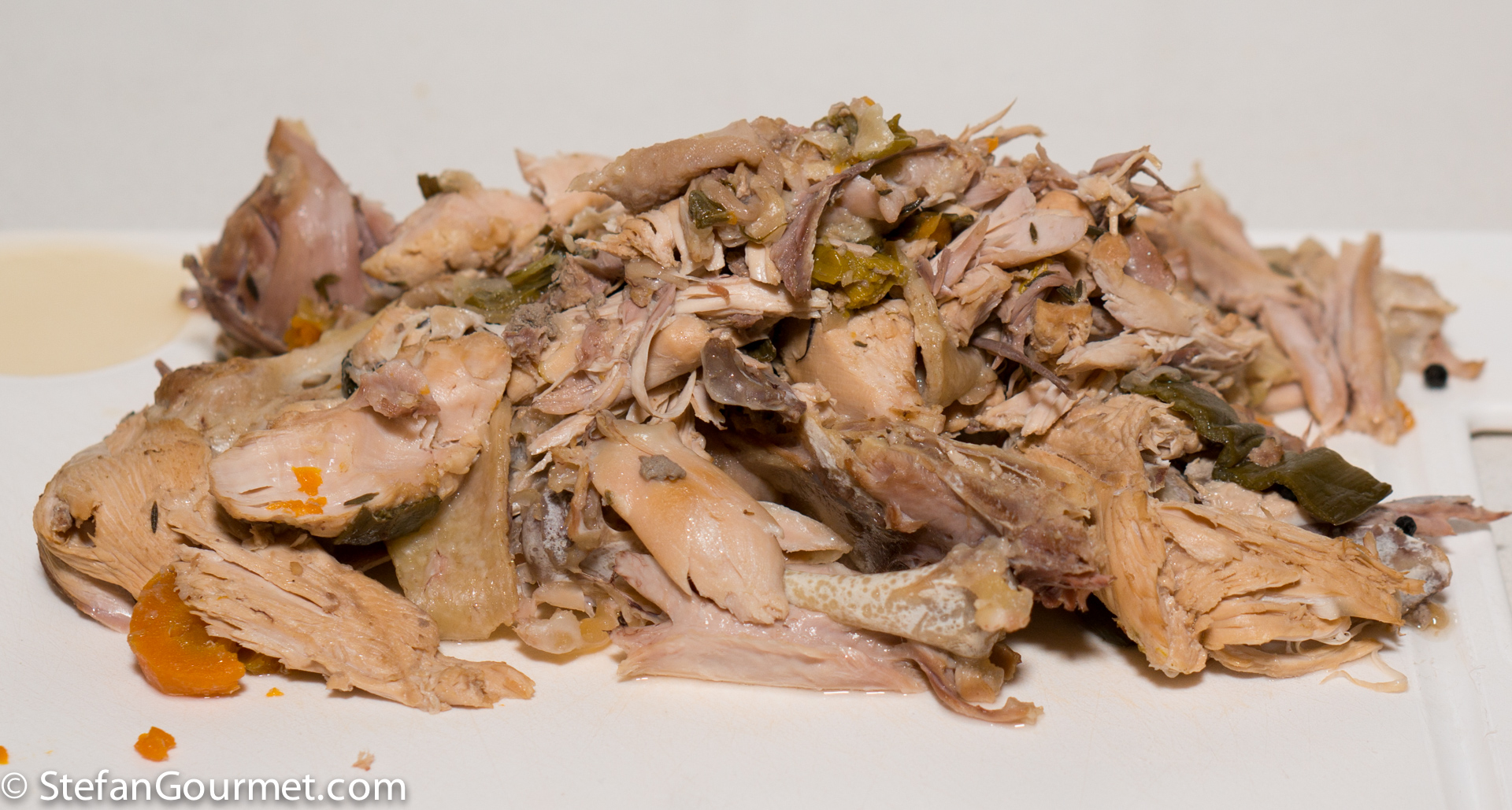 Discard the vegetables and gather the meat.