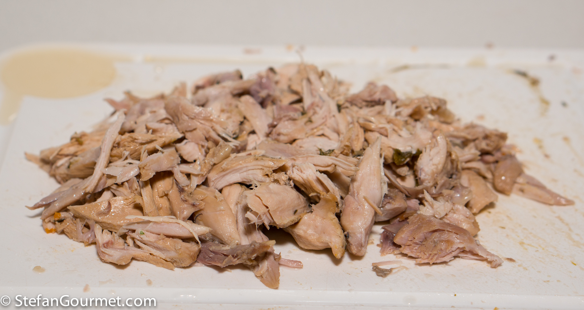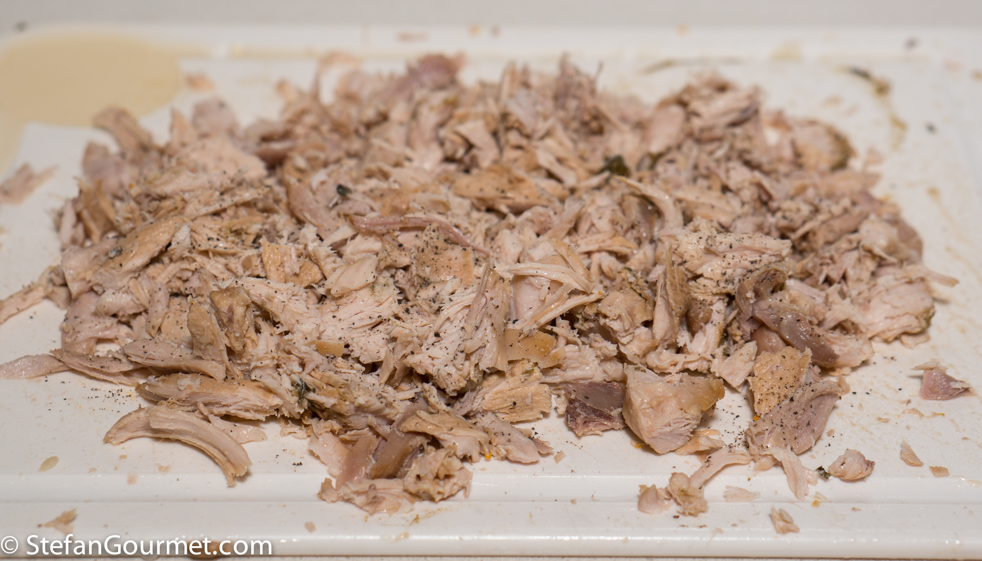 …shred the meat, season with salt and freshly ground black pepper, and reserve.