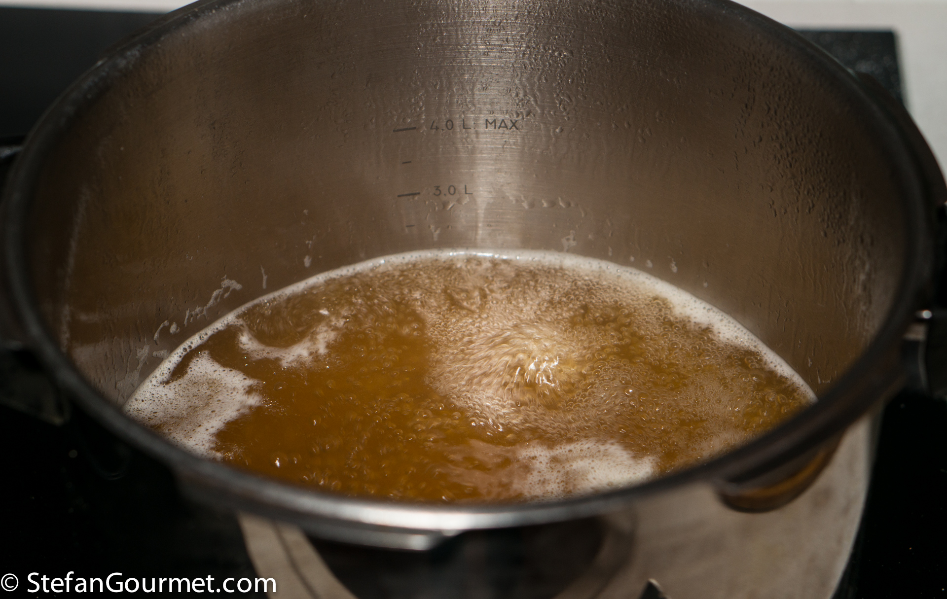If using a regular stock pot, bring to a boil, reduce to a simmer, and simmer for 3 hours.