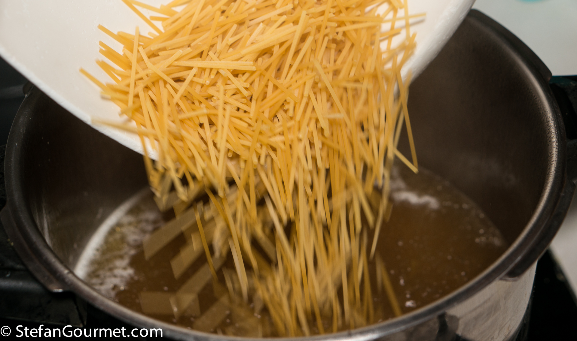 150 grams (.33 lb) soup vermicelli, or spaghetti, broken into 2 cm (1 inch) pieces