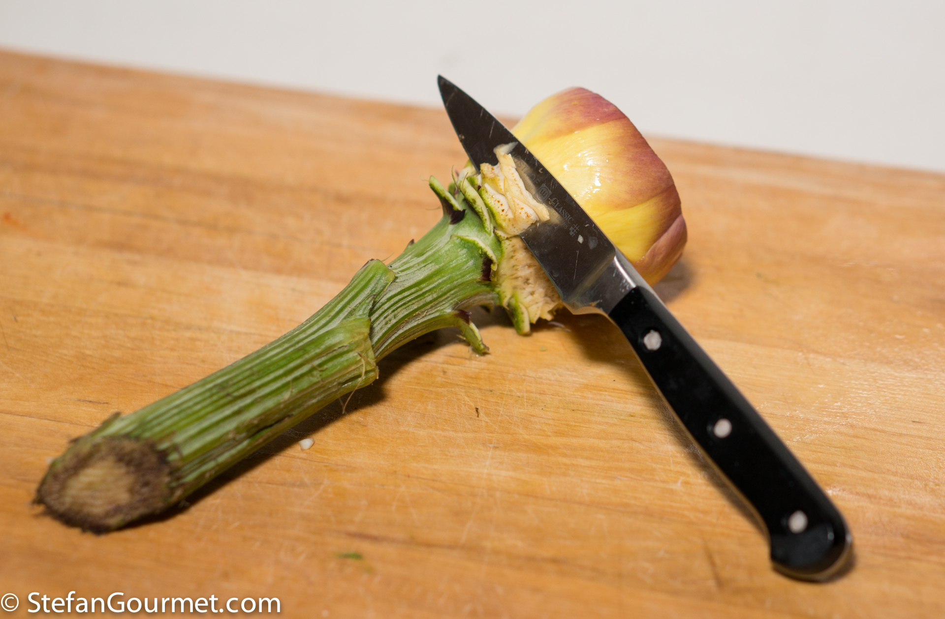 All of woody outside has to go, so remove it with a pairing knife.