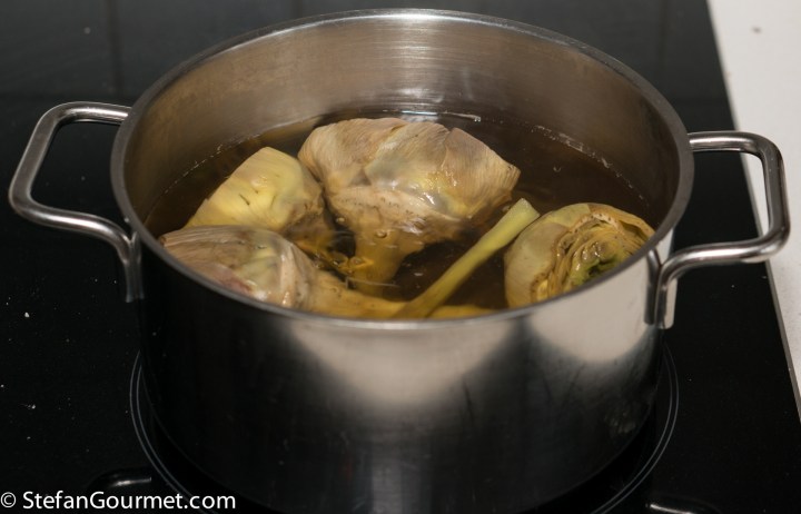 Gorgeous recipe, but six nice big ones for two people for an appetizer . . . Hmm !! Love the beasties, have about five months to wait, so enjoy the ones with most leaves still on to have a long and messy scrape and dip into a well-flavoured vinaigrette . . . . guaranteed conversation carrier with friends. But shall definitely try it your way with just a few special people 🙂 !
