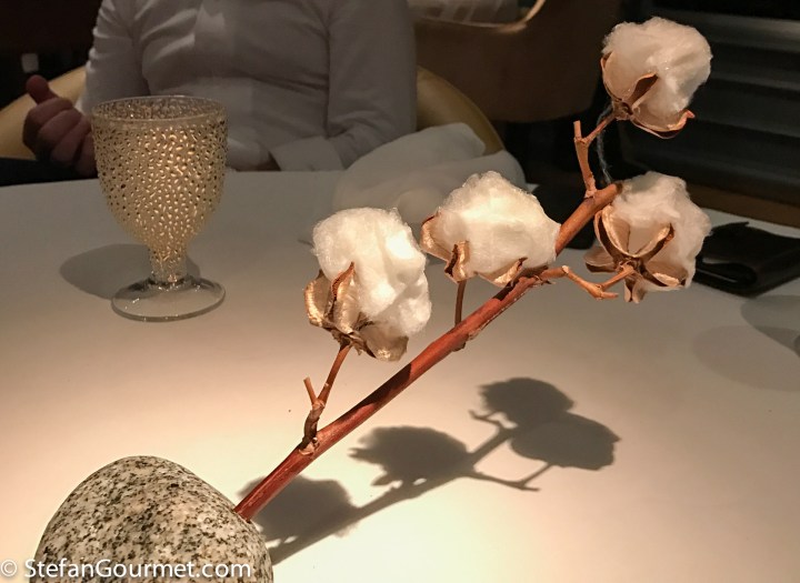 This ‘object’ had been sitting under a dome in the center of our table during the entire dinner. The waiter came by a couple of times to pour buckthorn juice over it. Then before the palate cleanser are was served, it was removed from the table.