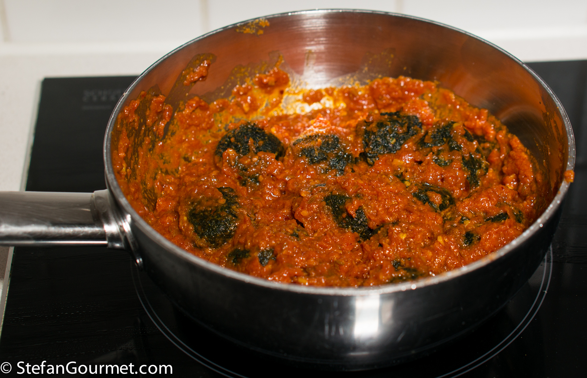 Combine the fried balls with the tomato gravy…