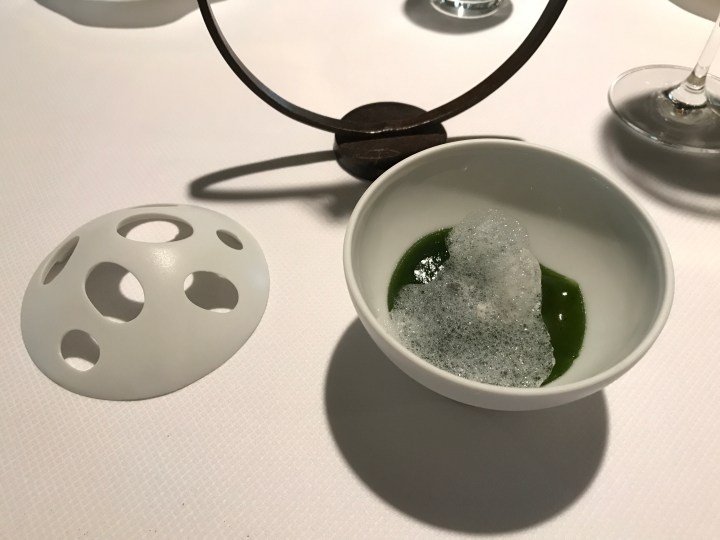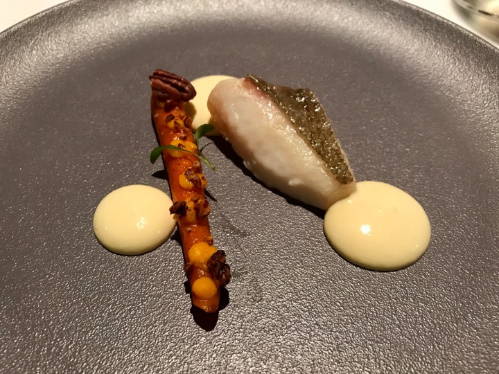 Next came the chef’s signature dish: foie gras with a warm balsamic emulsion. This was great, as the dish had great balance with a very good pairing between the sweetness and the acidity of the balsamic with the foie. 9/10