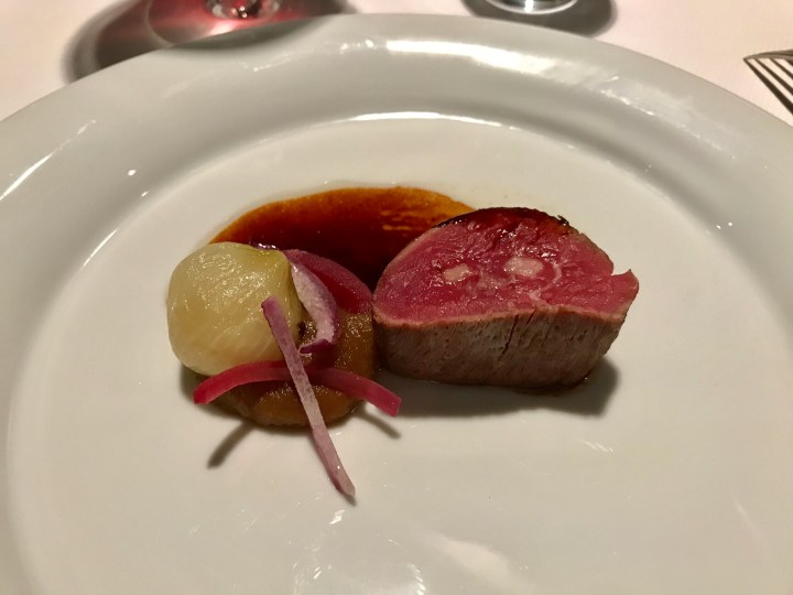 Charolais beef fillet, injected with lardo, with onion and blueberry vinegar jus. The beef was very tender. It didn’t really need the lardo, but it was nice all the same. The onion and jus also very good. 9/10