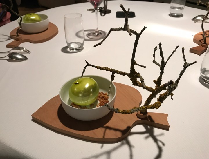 I’ve had a fake apple for dessert before, but this “Granny Smith apple” was even better because it was not only made of sugar but had actual green apple flavor. Inside was a very nice mousse and there was some crumble as well. 9/10