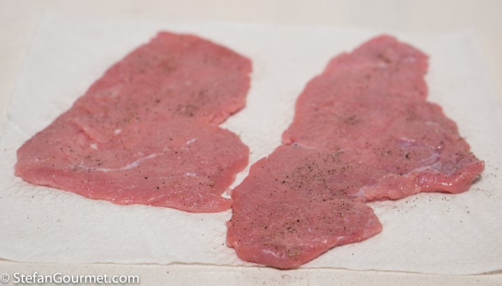 Pat the scaloppine dry with paper towels and season them with salt and freshly ground black pepper on both sides.