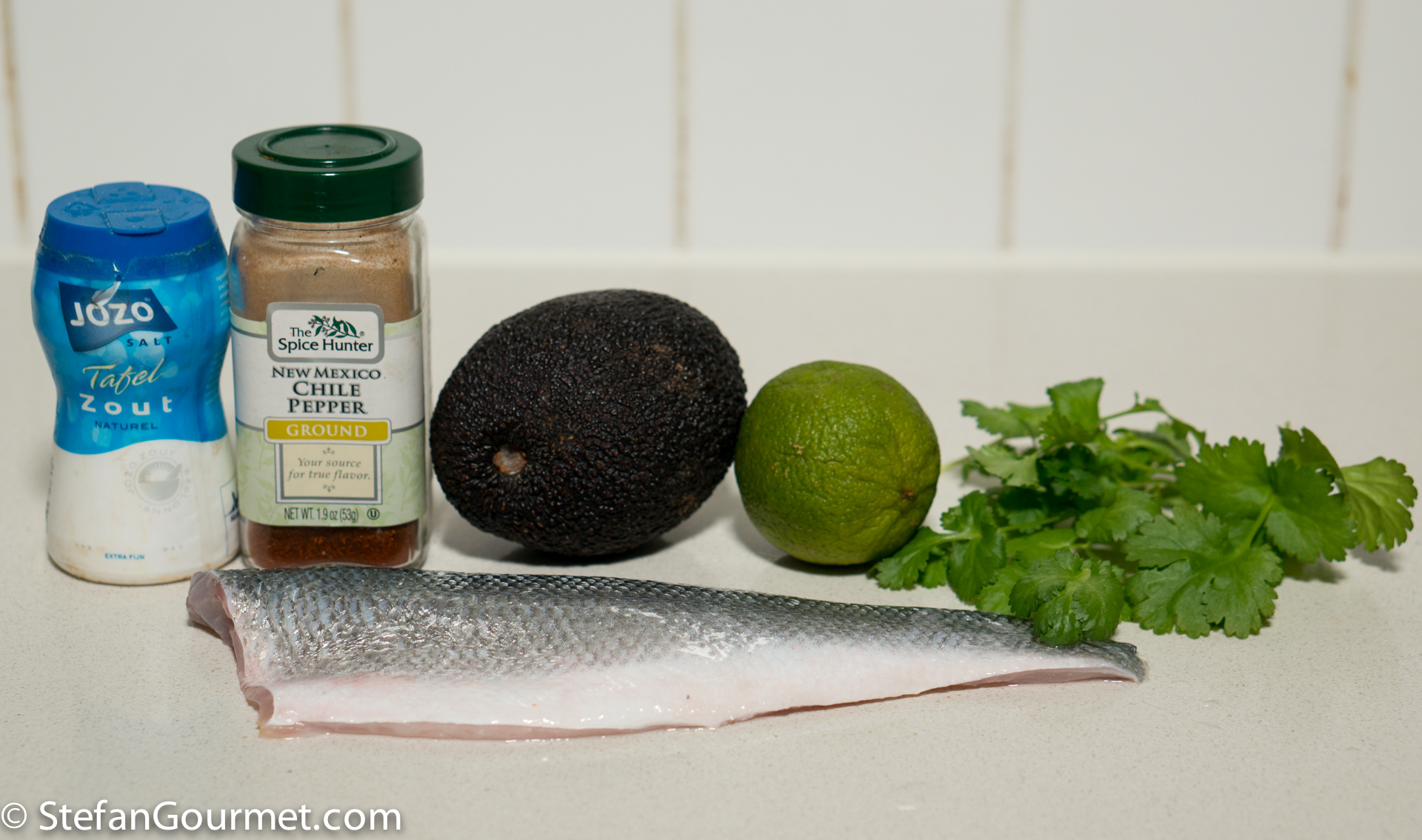It is always a treat when friends cooks for me. This simple but tasty dish is based on an appetizer that our friends Merel and Barthold served at a dinner party at their house. As usual with simple recipes, it all comes down to the best quality ingredients and good technique. Ceviche is a latin American technique to ‘cook’ fish using an acid, usually lime juice. Apart from using very fresh fish, it is important to ‘cook’ (marinate) the fish only for a brief time in the lime juice to keep it juicy and tender. Just like overcooking with heat, keeping it in the lime juice for too long will dry out the fish. The ceviche is accompanied by a very basic version of guacamole: just avocado, lime juice, and salt. You can throw this together in 10 minutes and it doesn’t require any cooking with heat, so it is perfect for a summer appetizer or light lunch.