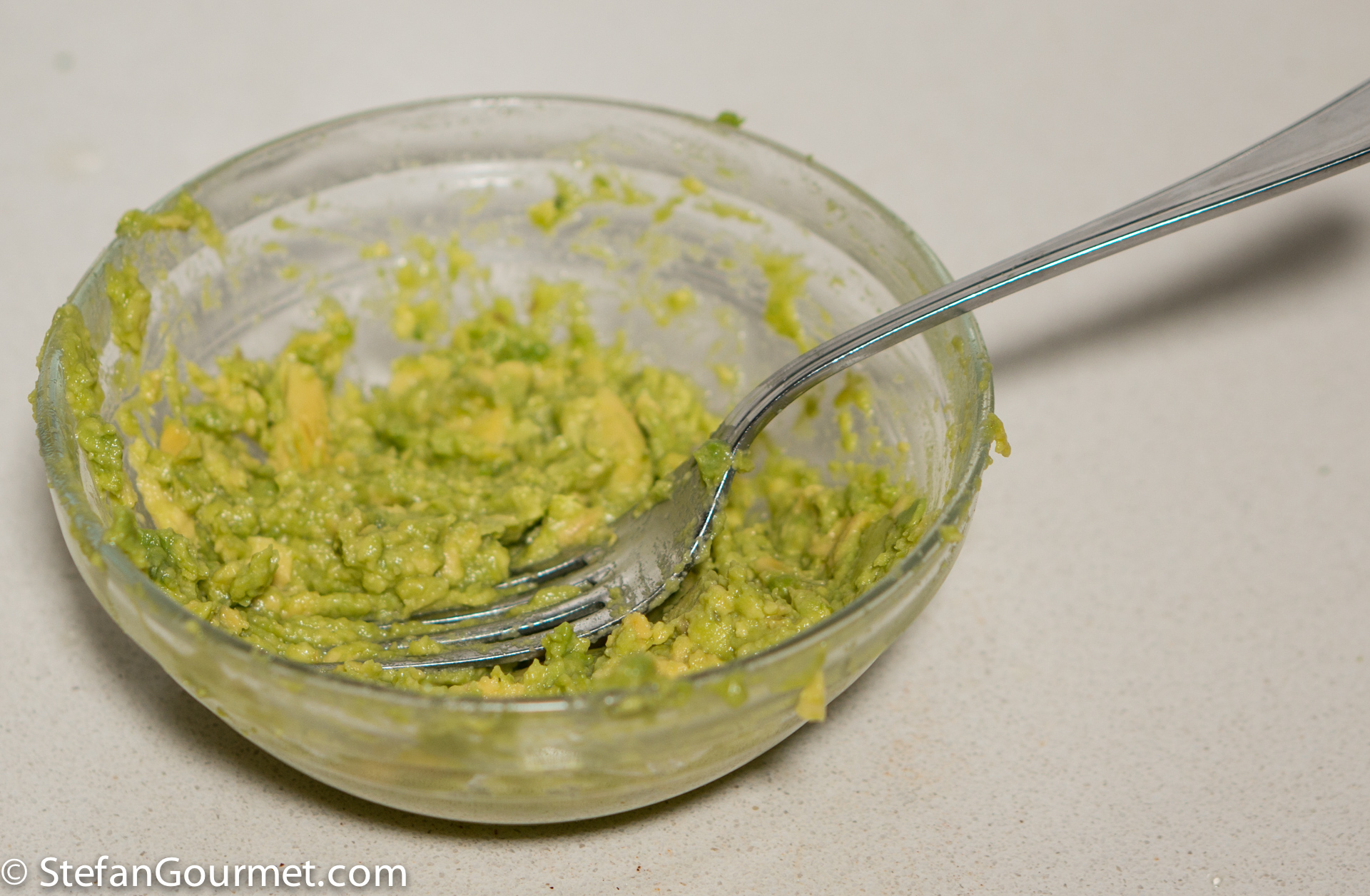 Mash and mix with a fork.