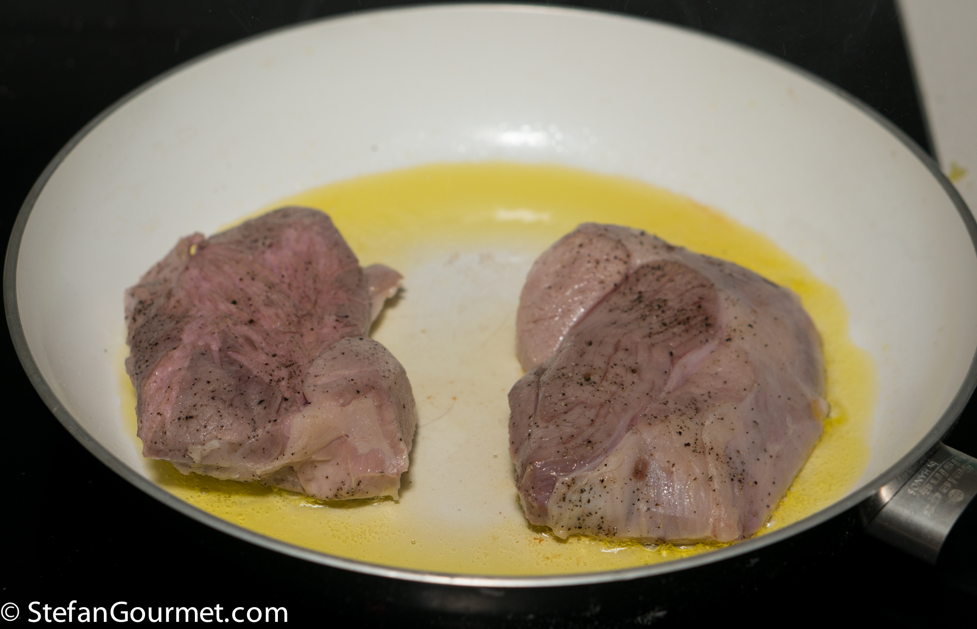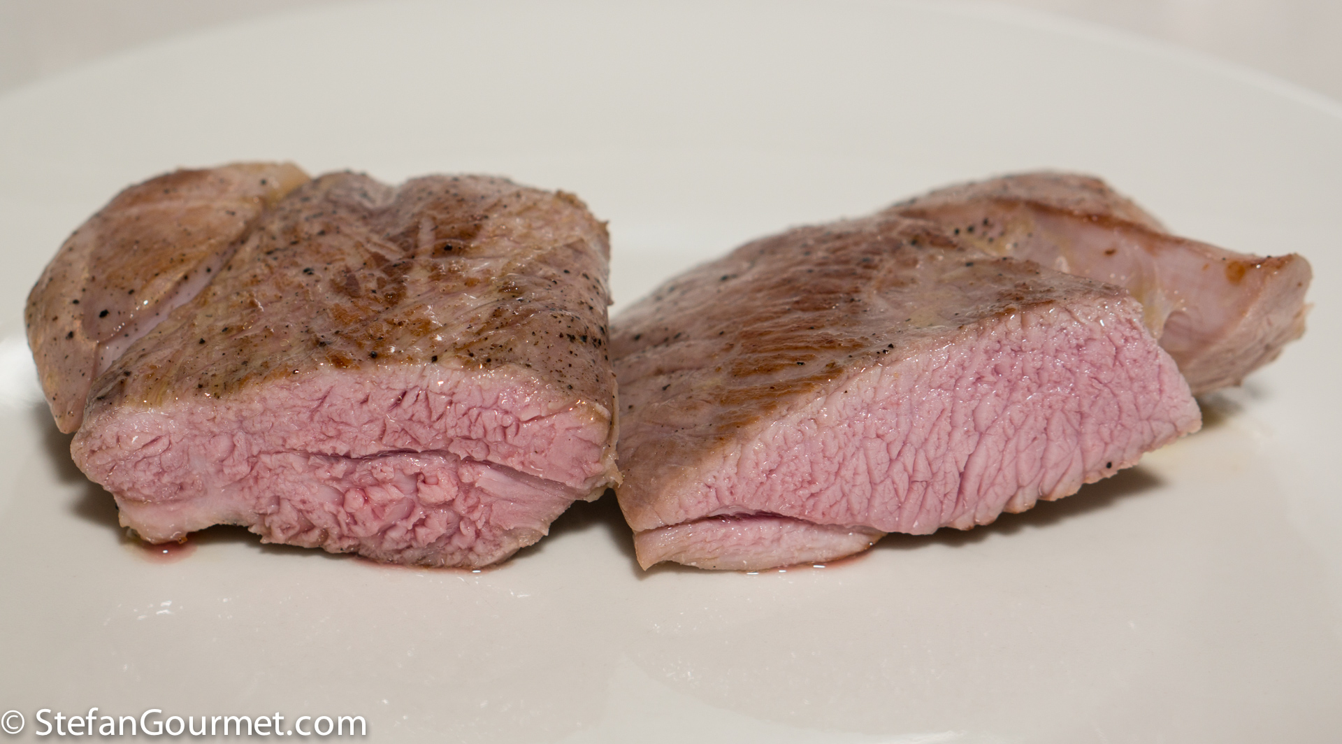 After those 2.5 hours the lamb looked a bit grey, as is usual with sous-vide cooking.