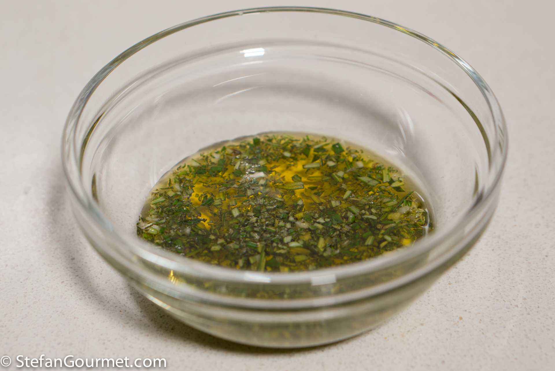 Mix a minced clove of garlic with a tablespoon of minced rosemary and extra virgin olive oil in a small bowl.