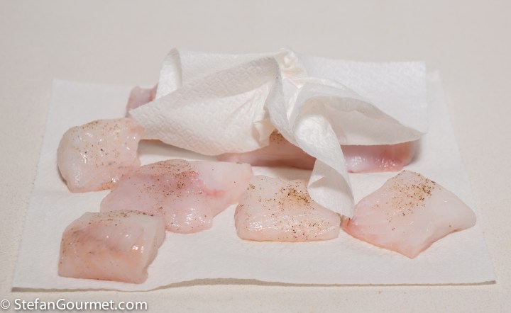 Take the monkfish out of the refrigerator and pat it dry with paper towels.