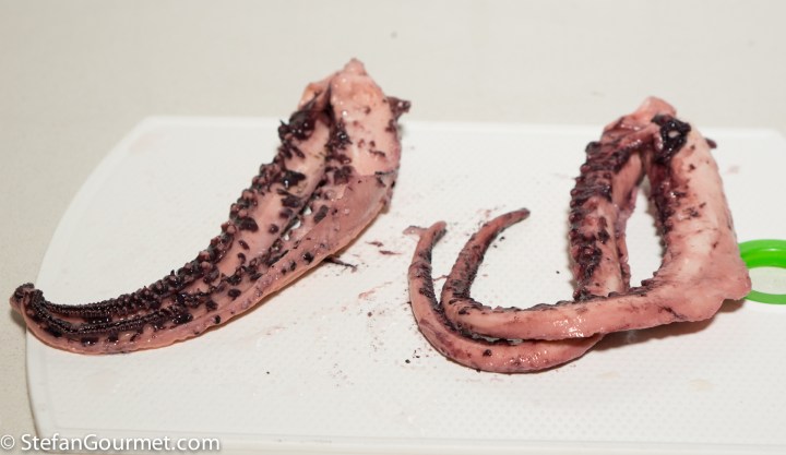 But… the sous-vide octopus was better than the traditionally cooked octopus because it was more juicy and more flavorful. The latter is not surprising, as the traditional way is kind of like making octopus stock, and some of the flavor will end up in the cooking water.