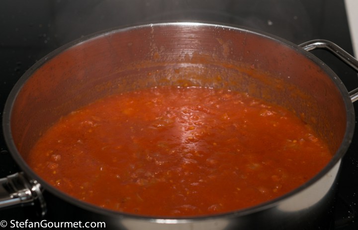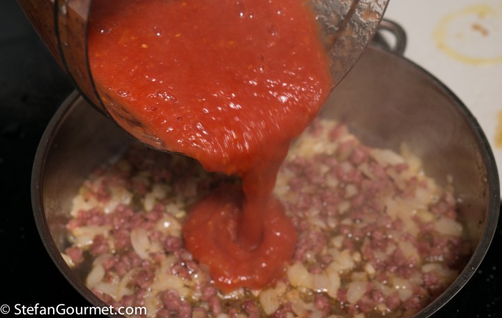 400 grams (14 oz) peeled tomatoes (fresh or from a can), pureed in the food processor