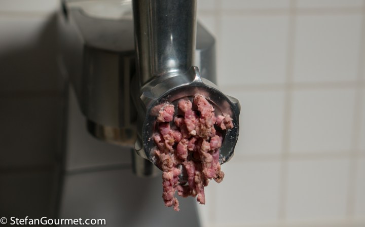 When we had dinner at Michelin-starred restaurant S’Apposentu in Sardinia (read about our experience there in my review), one of the dishes that I decided right away I wanted to try at home was an unbaked lasagna with a mutton ragù. The idea is quite simple: alternating layers of fresh pasta and ragù are served without the usual step of baking the lasagna in the oven. The version at the restaurant was made with egg pasta and included some green beans, but I thought it would be nice to keep it Sardinian with pasta made using semolina flour and water only, and to omit the beans. I used lamb and decided to cook the ragù sous-vide to give it a silky texture. The meat is browned before grinding it, which gives the best of both worlds: the flavor development from browning without the gritty texture. Together with the silky pasta this turned out to be an amazingly delicate and delightful dish that would be lovely to grace your dinner table during the holidays. The only drawback is that you have to work fast (and not serve too many portions), so the pasta and ragù don’t cool off too much while you assemble the lasagna. You could of course make the ragù without the use of sous-vide, but it will be difficult to obtain the same silky texture.