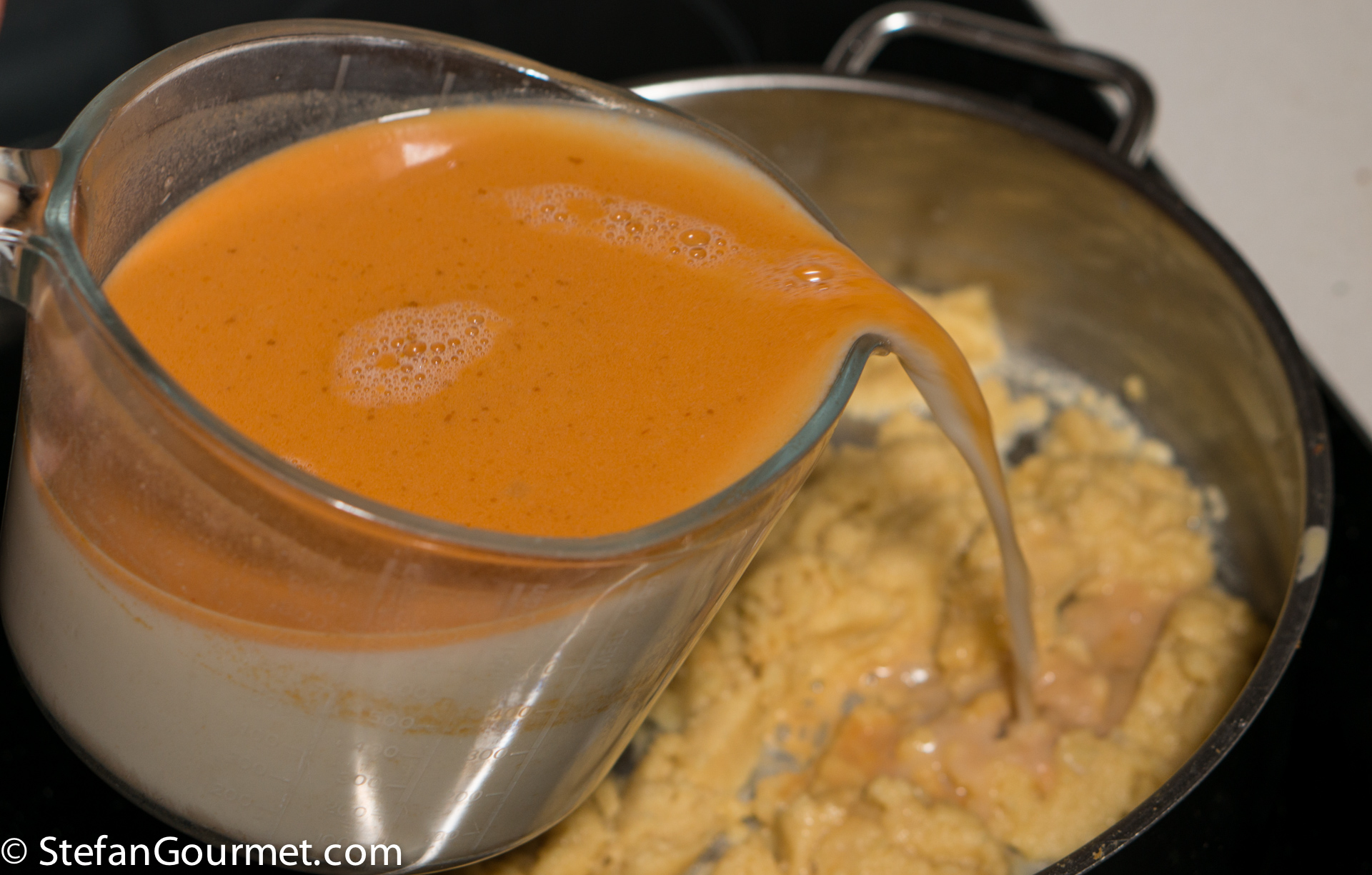 Combine the stock with 250 ml (1 cup) of milk.