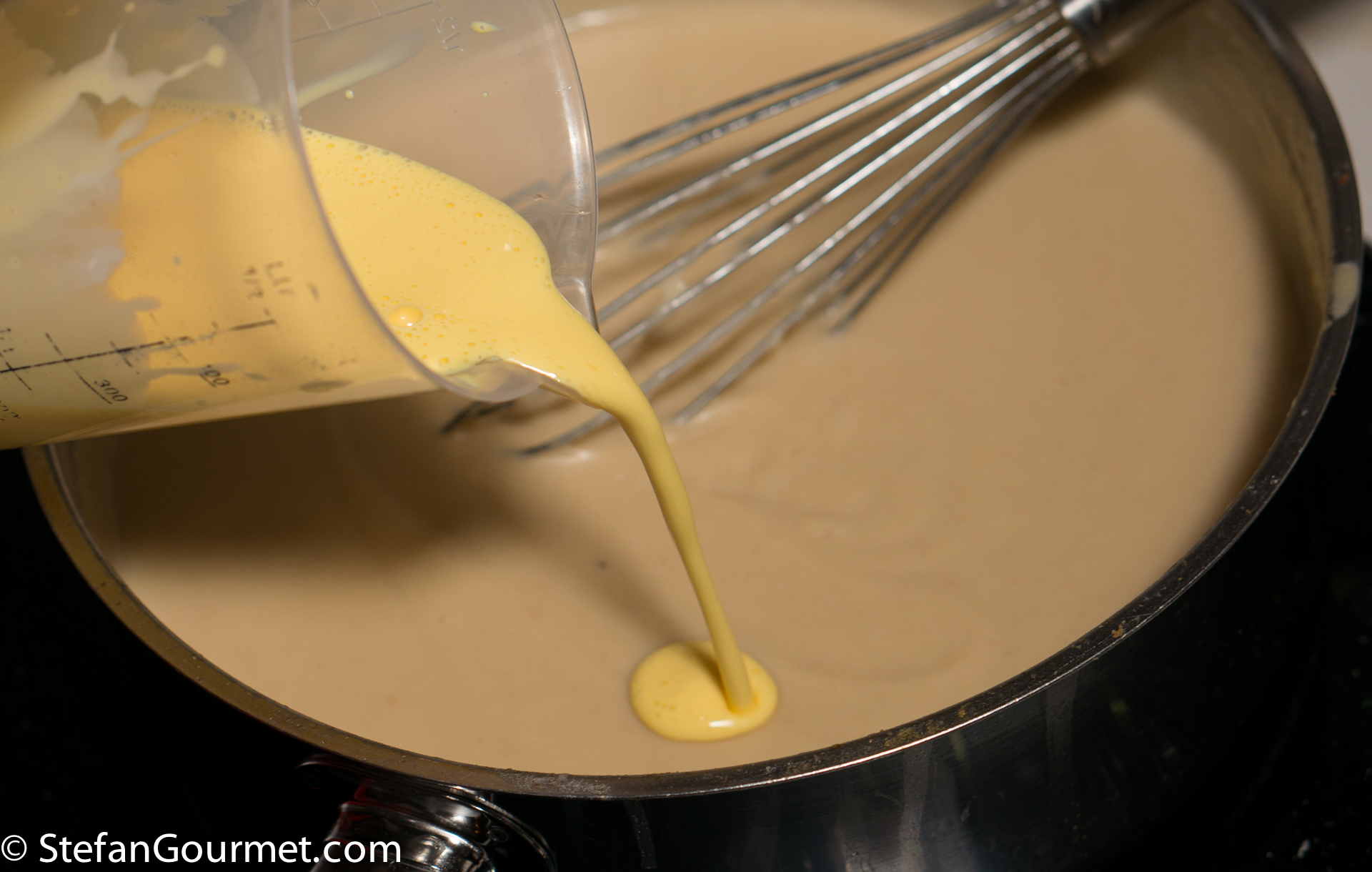 Whisk energetically over medium heat.