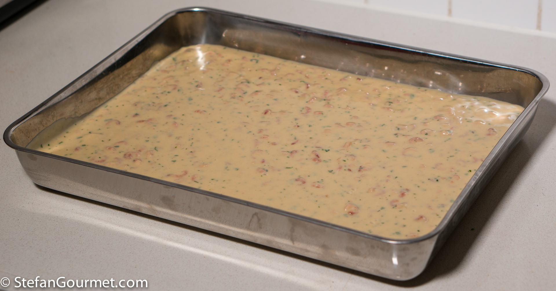 I used the recipe of retired pastry chef Cees Holtkamp. I made a few small changes, the most important being that I did bought already peeled small shrimp, and used shrimp heads and shells from my freezer. The secret to a crispy crust is to use two layers of breadcrumbs: the first layer with regular (fine) breadcrumbs, and a second layer with coarse breadcrumbs. In this post you can read how to make fine and coarse breadcrumbs yourself from old bread. You can also use panko for the coarse breadcrumbs.