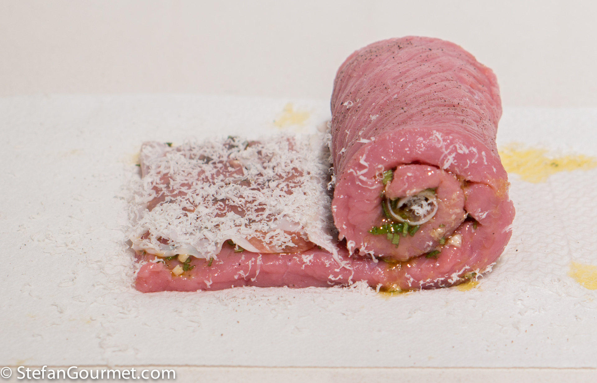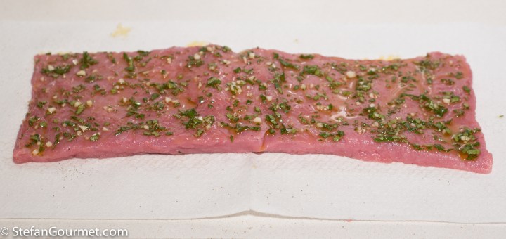 Spread this mixture on one side of the veal.