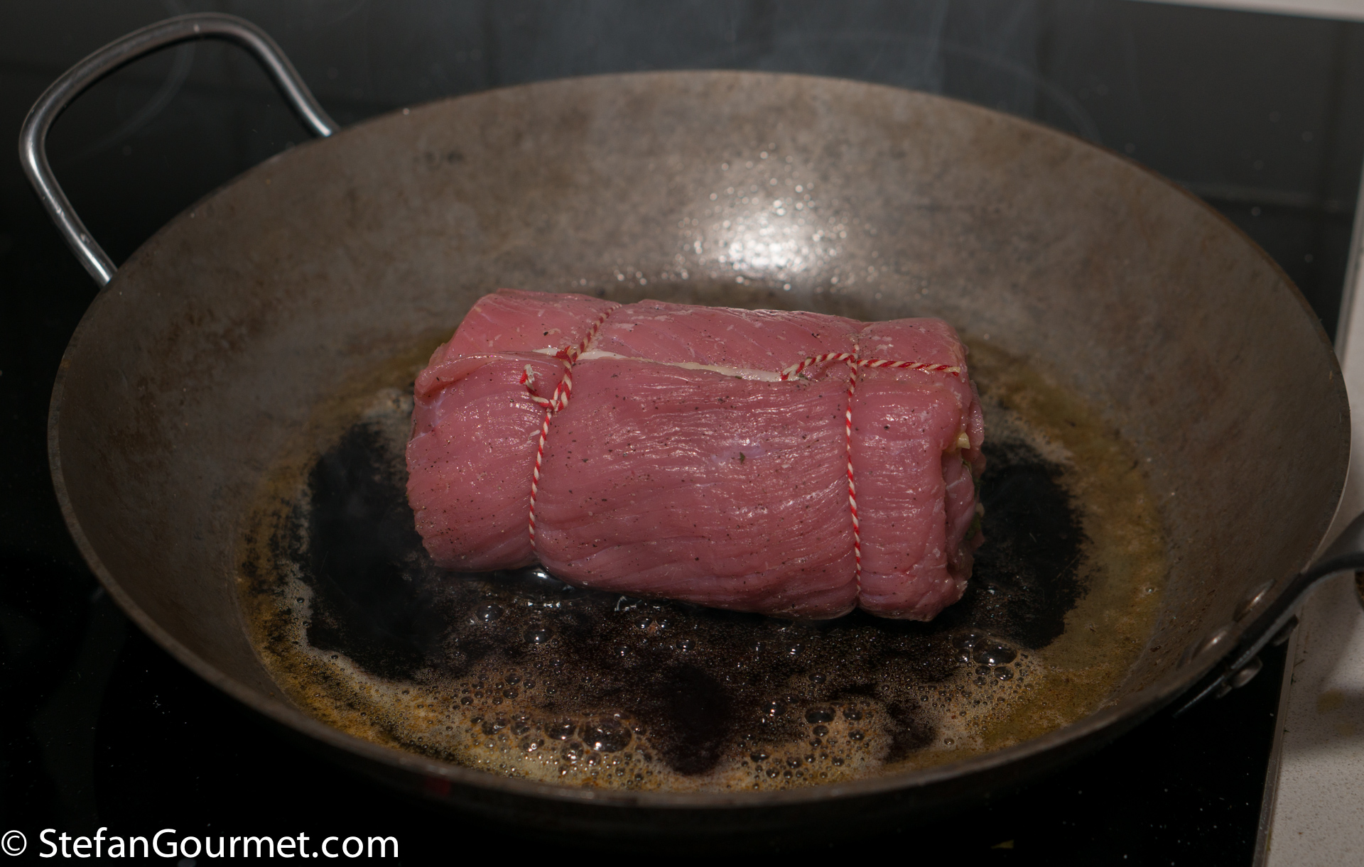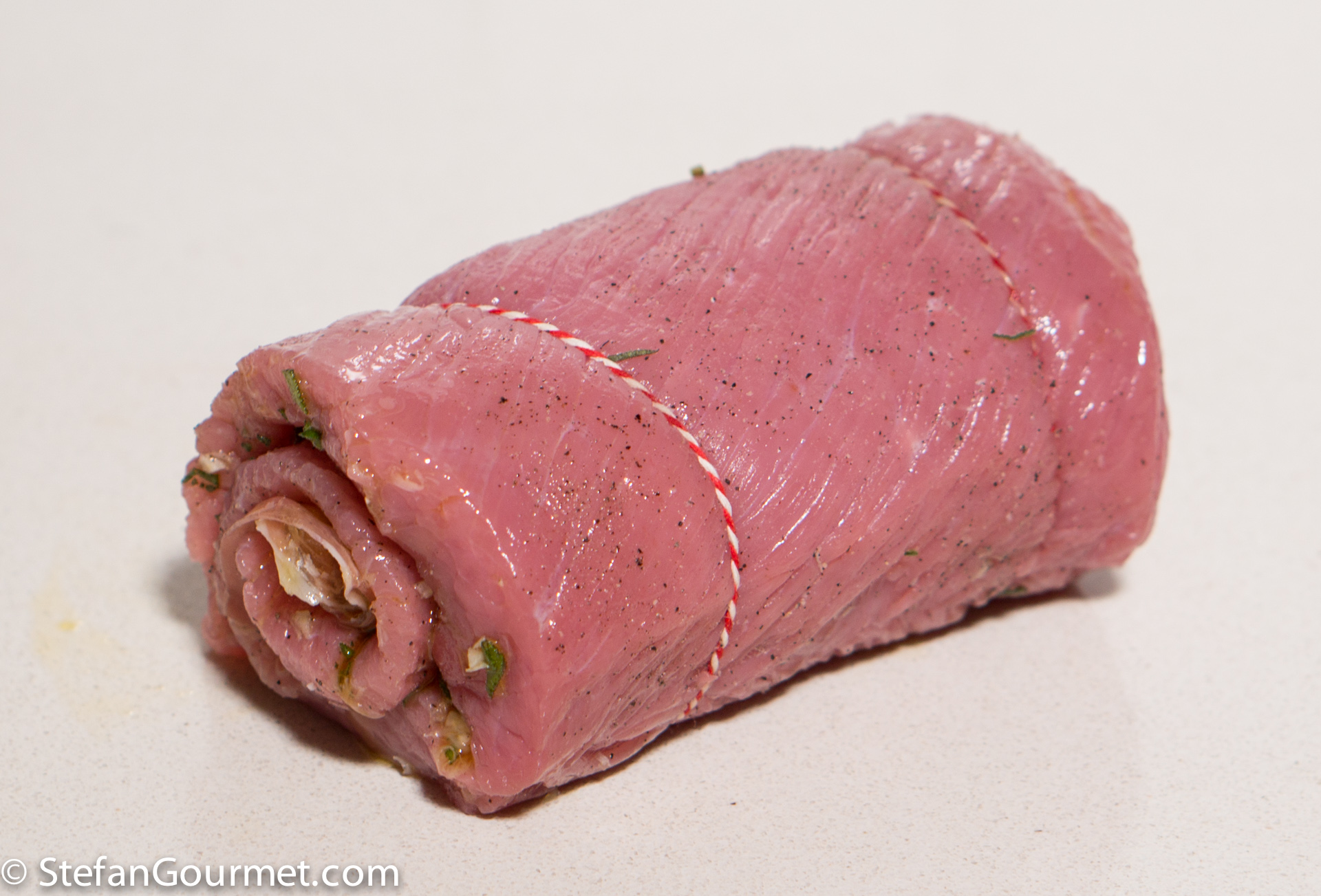 Secure the roulade with butcher’s twine.