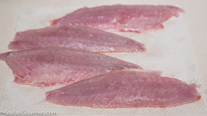 Meanwhile, season the fish fillets with salt and freshly ground black pepper.