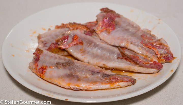400 grams (.9 lb) red mullet fillet, from about 800 grams (1.8 lb) of red mullet